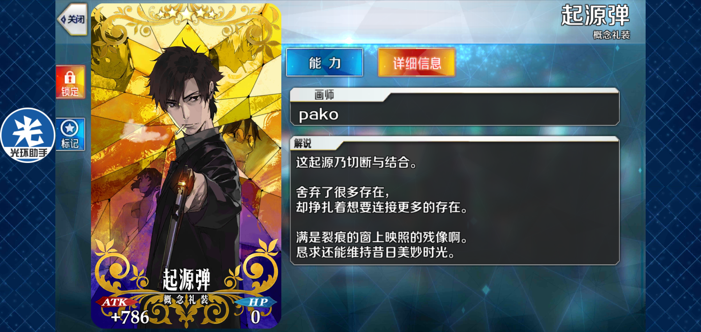 游戏五星礼装起源弹,卡面左上角便是幼年切嗣,左下夏莉,右上养母兼恩师,右下他爸爸。“明明舍弃了很多存在,却挣扎着想要连接更多的存在。”这便是他的真实写照。明明决定了要舍弃过去,却逃不过悲伤。动漫中他不合群,经常一个人坐在角落抽烟,若有所思,却不知思何物。悲伤只随着烟一起升起,慢慢消失在风中,无影无踪。比谁都孤独冷酷,比谁都不耻,却又温柔至极。