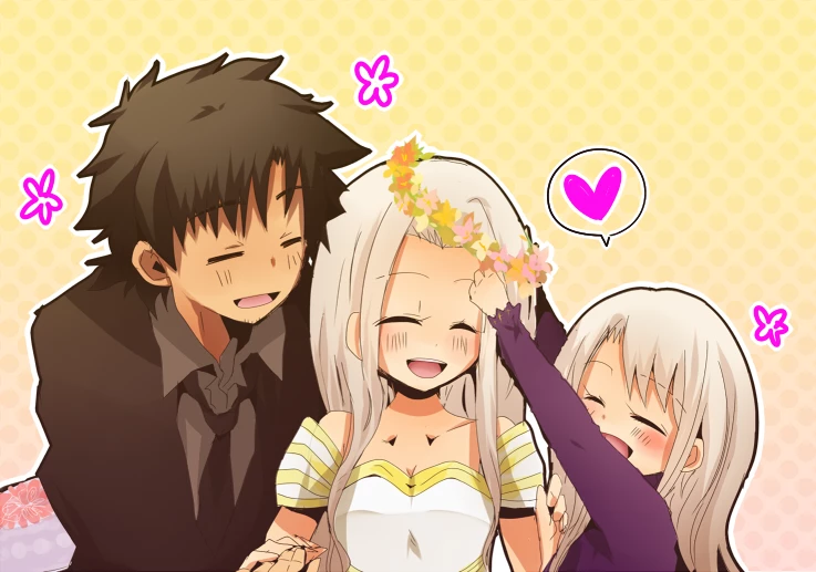 宁愿背负世界一切恶名,从不解释,孤独且悲伤的男人——卫宫切嗣。最后放一张同人图,也就只有在那里,他们一家人才有温馨的一刻。