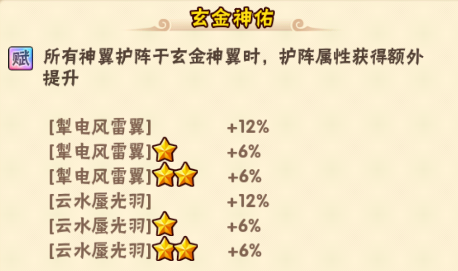 ①零星玄金翅膀即拥有12%护佑加成,且星级越高加成越高,零星替换不亏,高星替换血赚