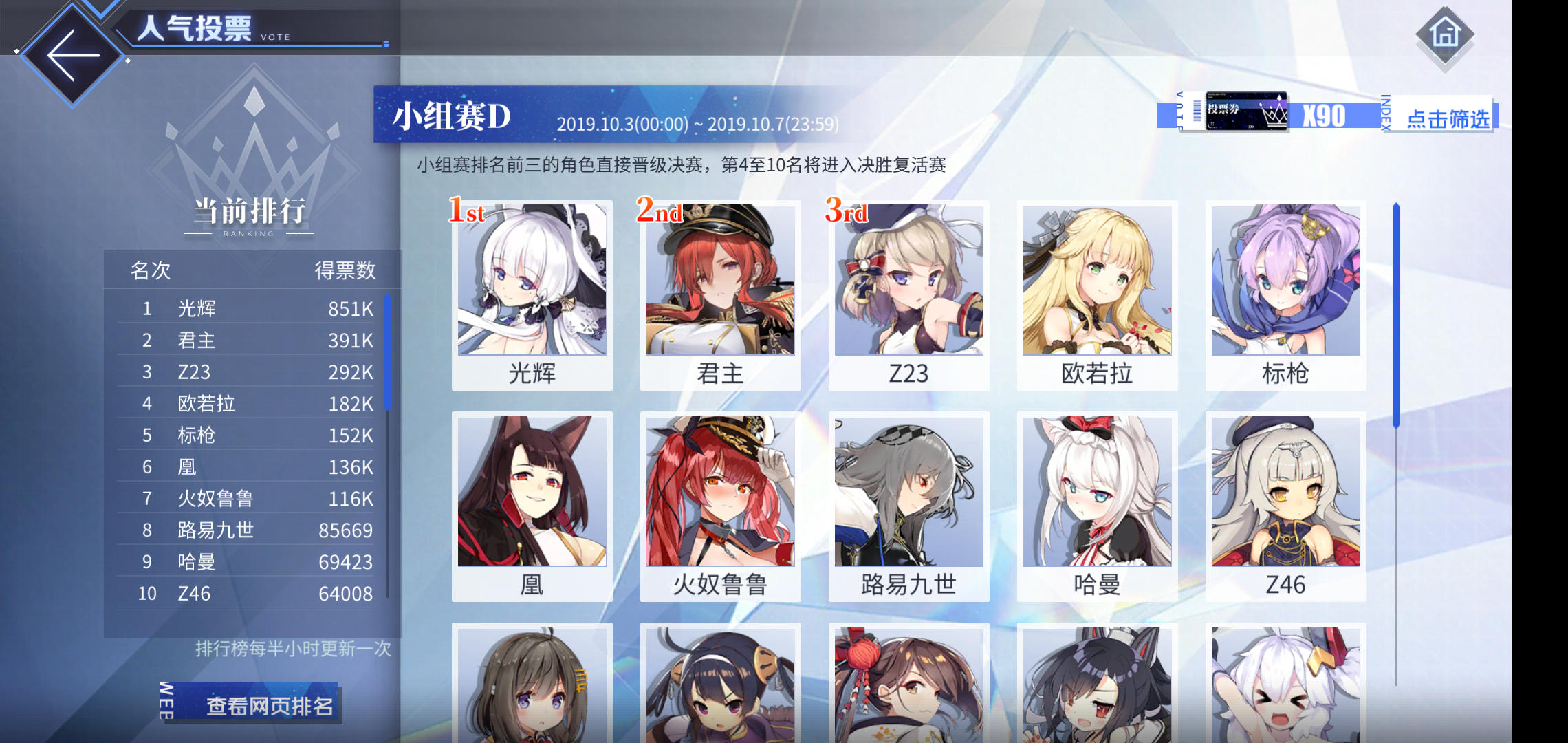 紫不理这次也参加排名,不过在第十五名,已经算是很好的成绩了。毕竟阿贾克斯和约克公爵甚至金坷垃都没有她排名高,不过估计进不了前十,只是作为一种玩家情怀而走到最后就好啦。
