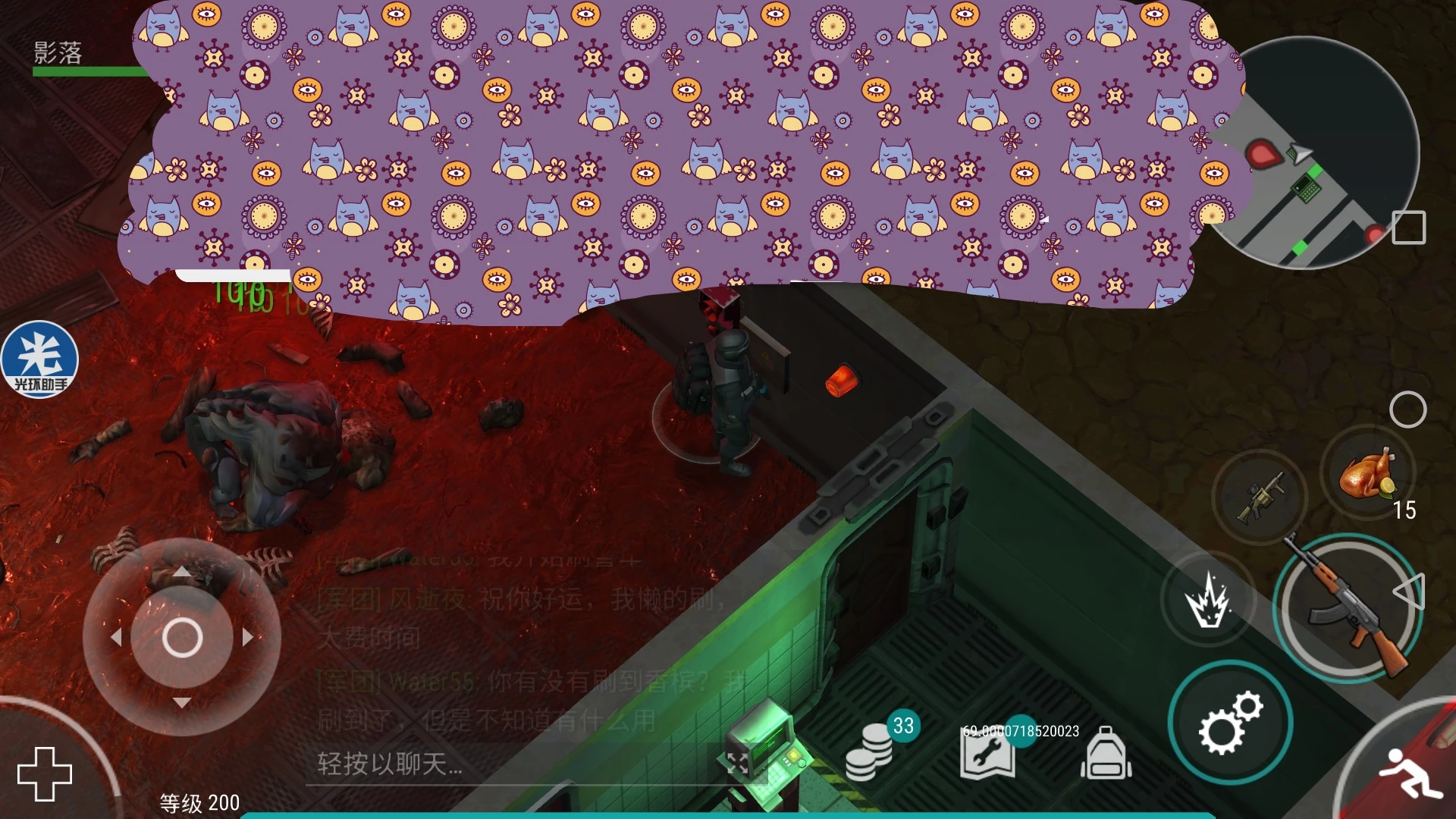 就是这个boss,2000的惊人血量,其实也不多,推荐带一把射速快的枪,加特林也可以哟,大概在700血时,蹂躏者会吐痰。如图所示↓