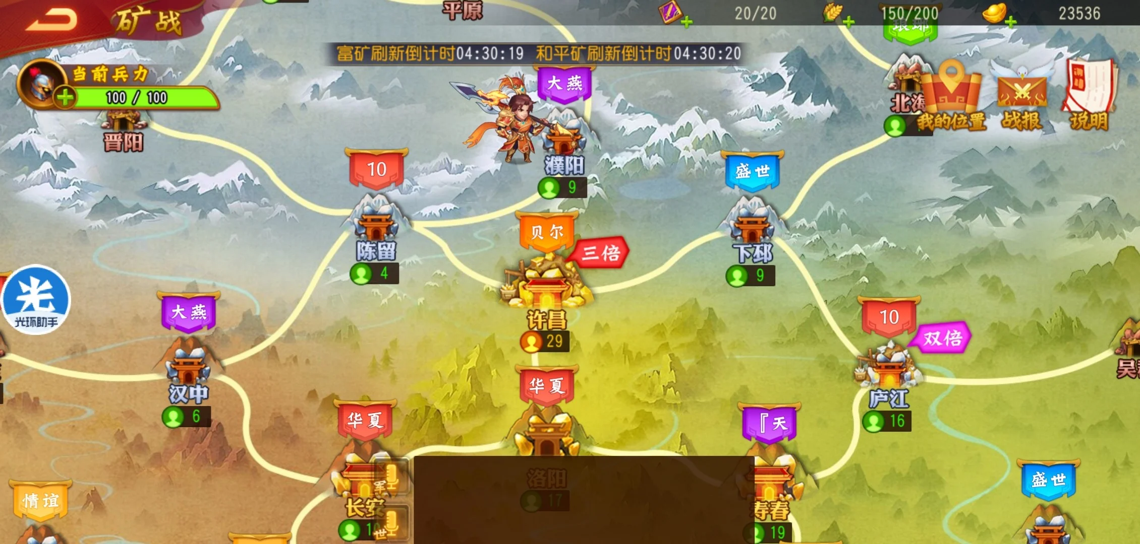兜兜转转游戏进行到第五天,军团矿战开放,有实力的前123名军团开始占据本服的优势黄金矿资源,进入到矿区的军团成员可以获得大量元宝。