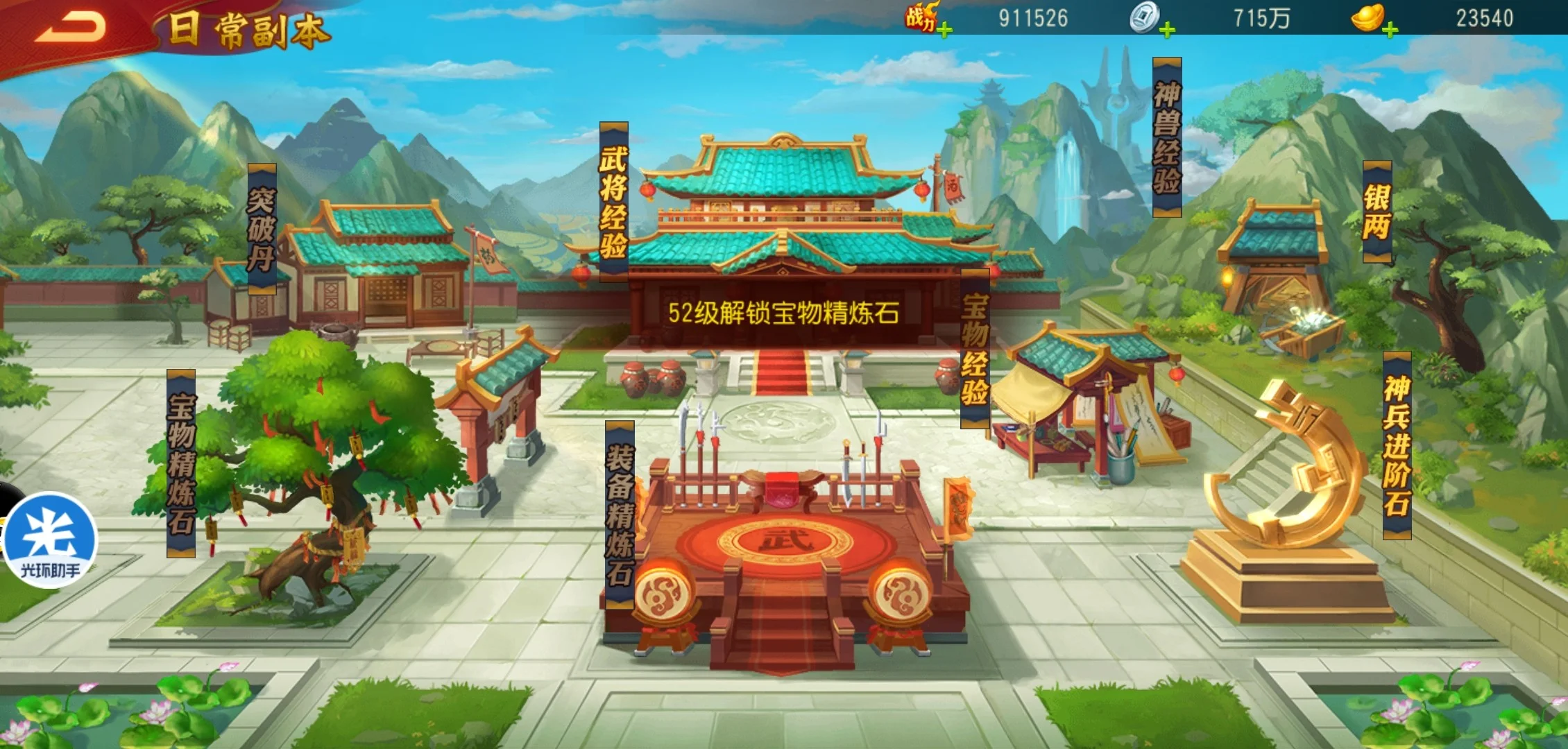 2、等级到达50级,开放宝物精炼,不需要过度收集宝物精炼石,重点收集砚台资源。