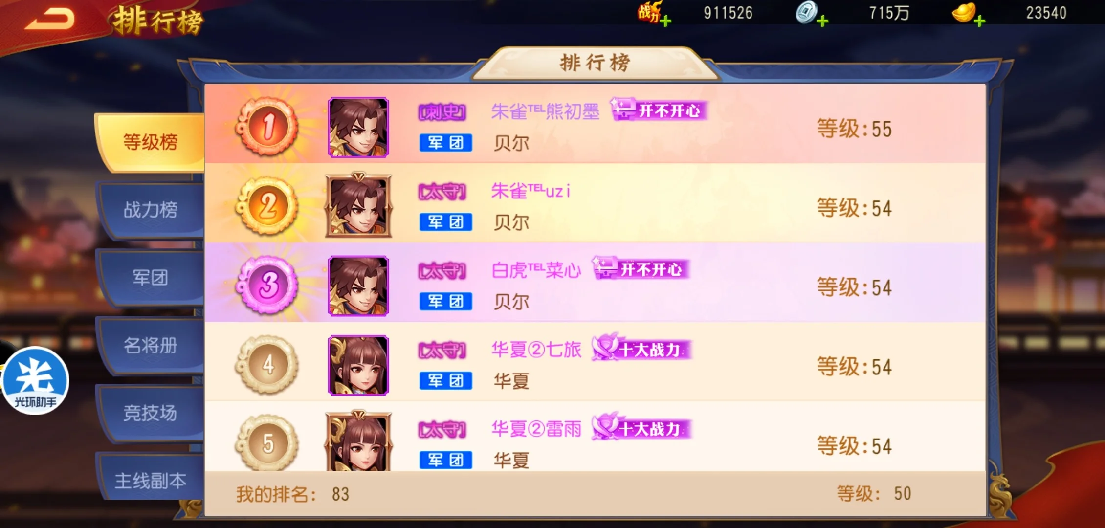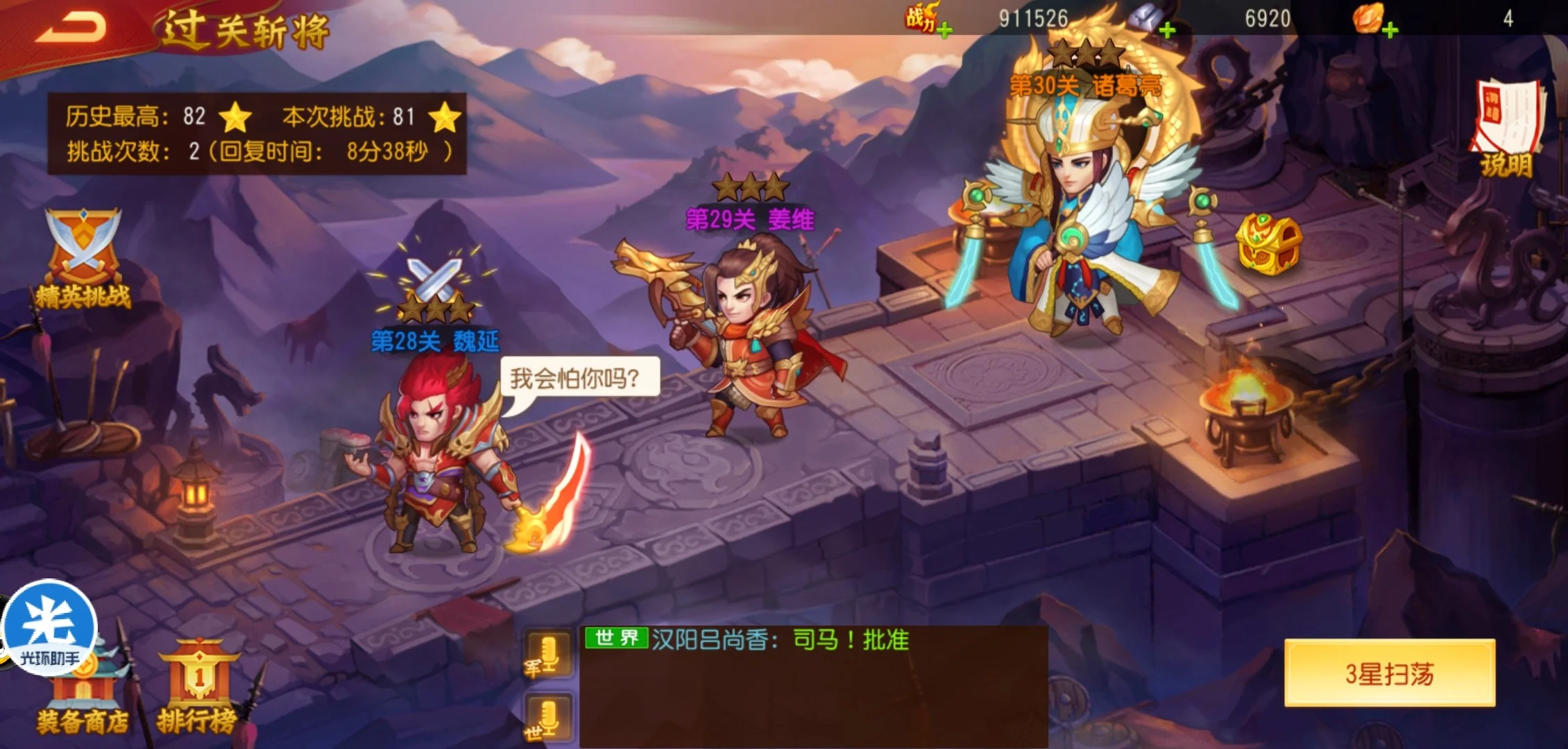 因为需要计算每天消耗的体力,所以早上的10次主线副本任务可以在升级后消耗50体力扫荡副本完成,名将副本任务也需要消耗50体力完成,获得元宝和将魂资源。