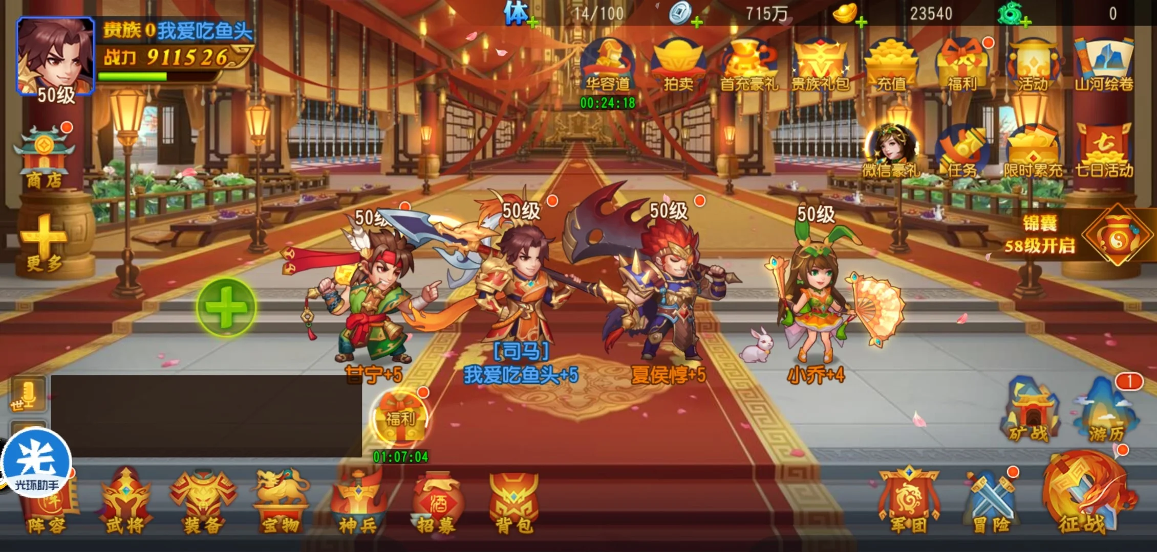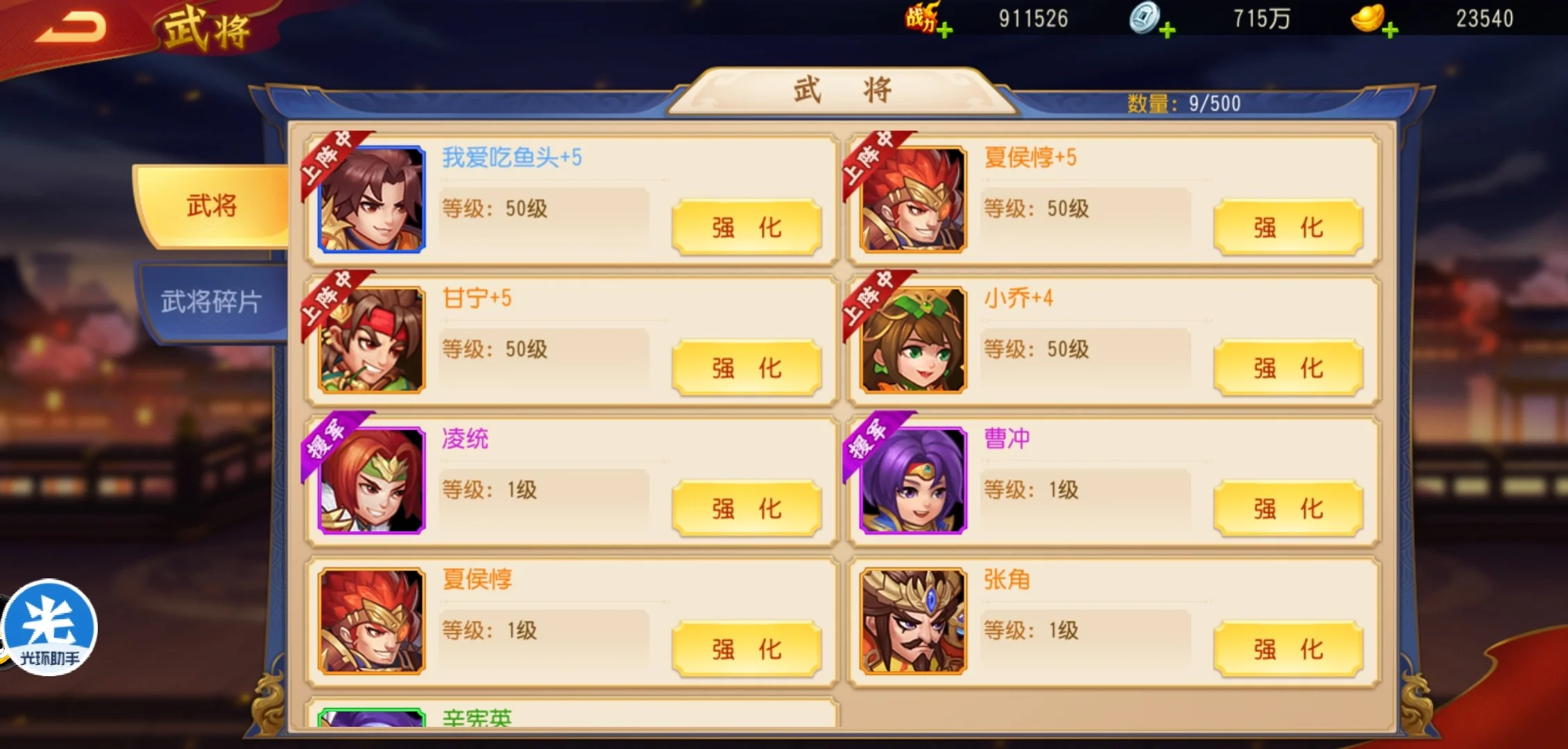 3、持续打造自己阵容,抓紧武将的突破、神兵培养。