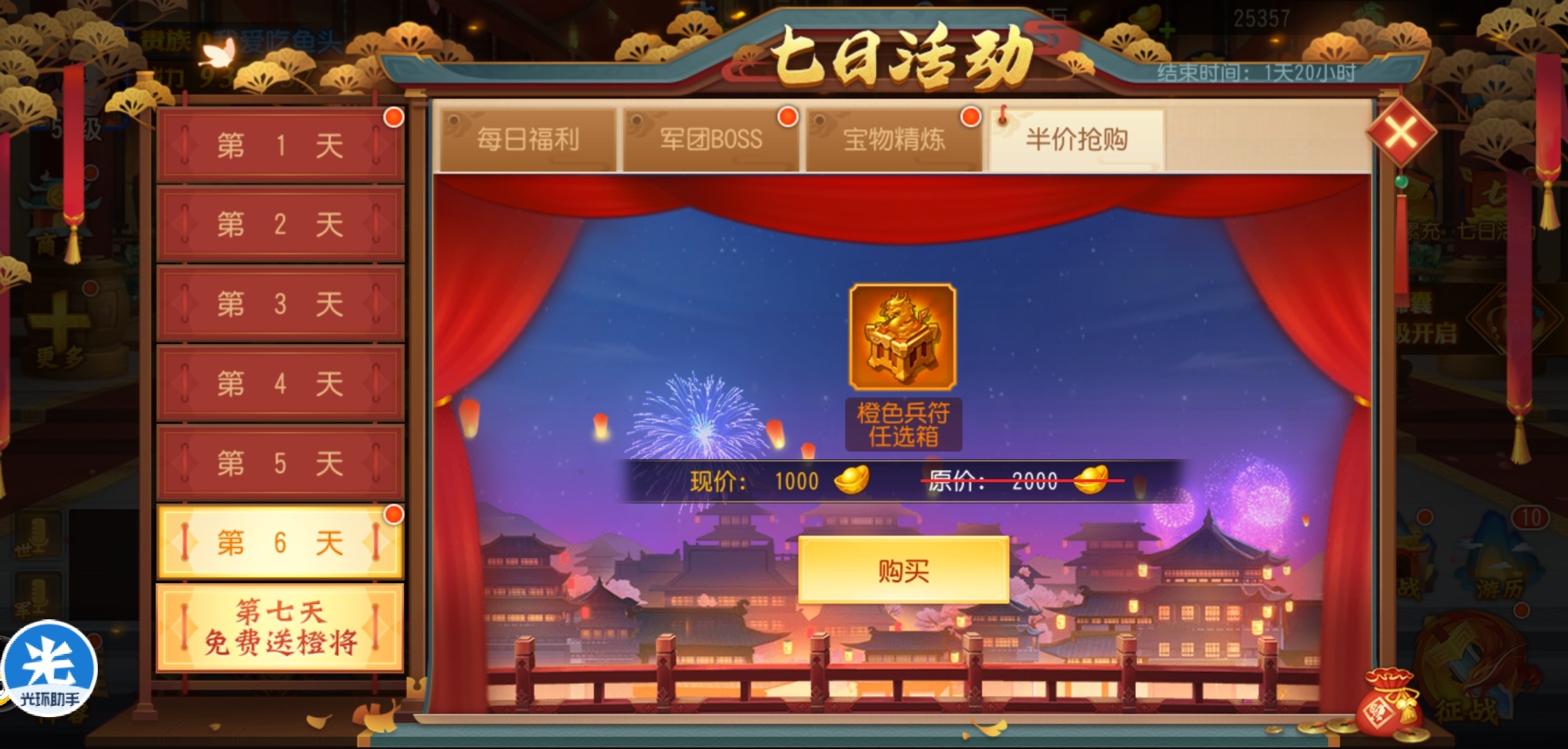 第六天的半价购买奖励是兵符,也就是我们常说的装备在右边的宝物。