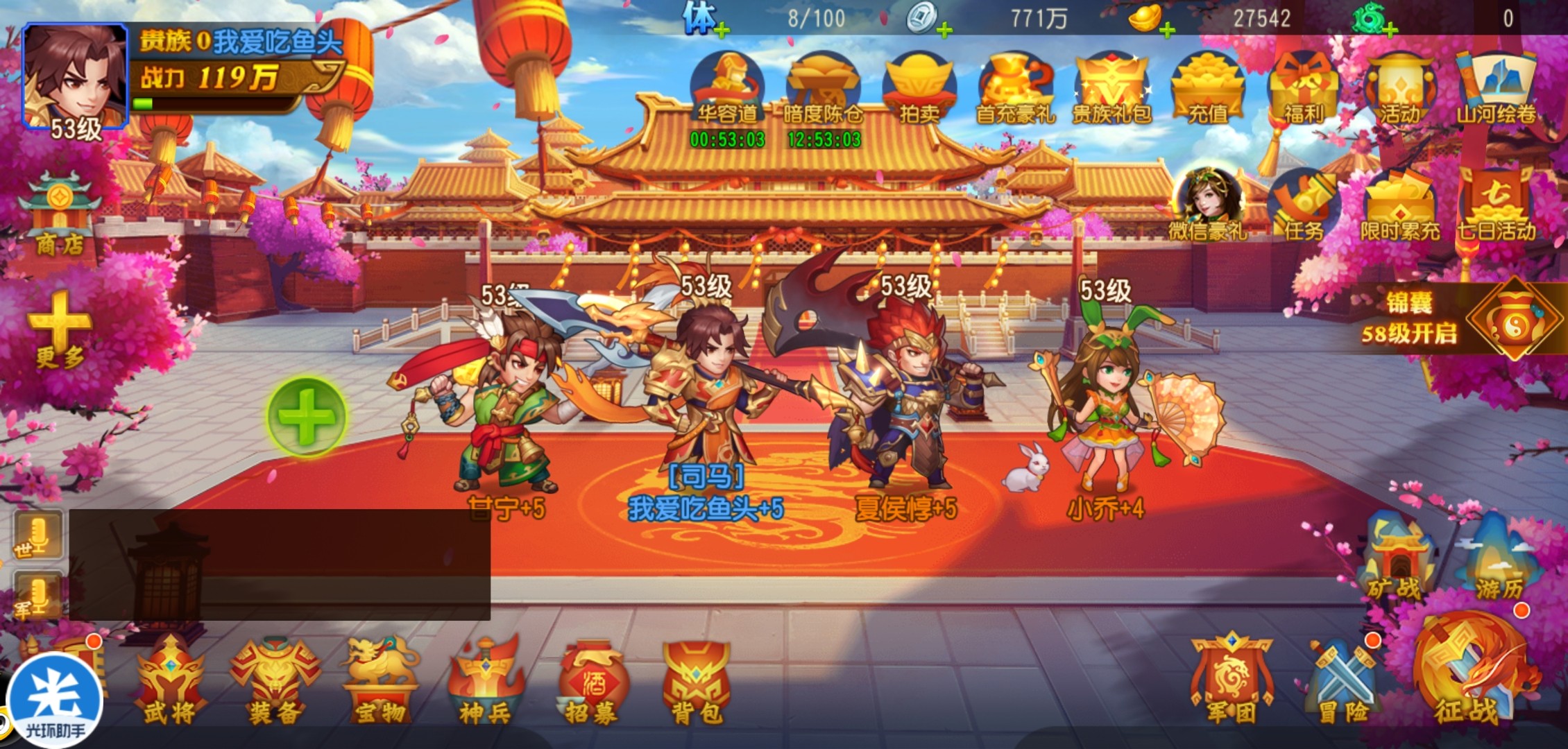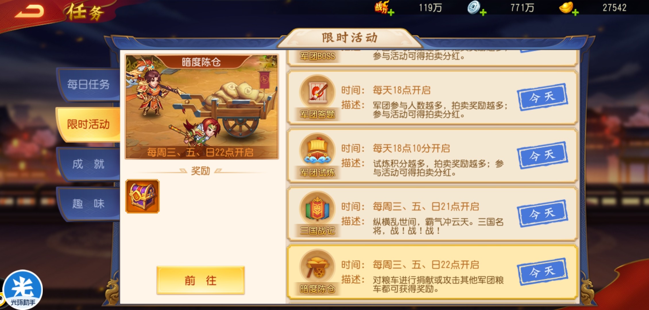 2、暗渡陈仓活动记得存2000军团贡献捐粮车,晚上10点记得参与活动,兵粮箱子存着以后开。