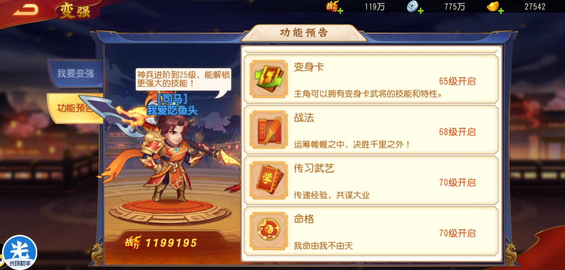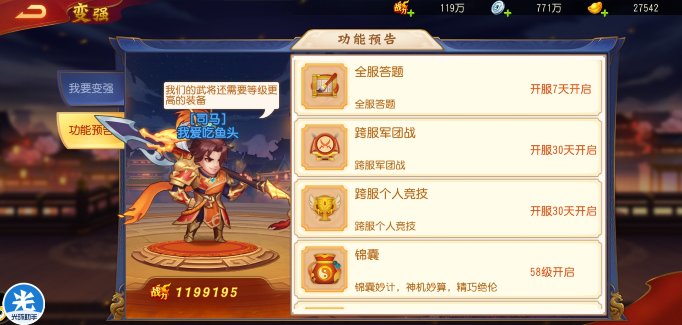 5、利用好游戏中“我要变强”“图鉴”等功能,能帮助新手朋友更好了解游戏的武将、道具属性,等级提升后的各种功能活动。