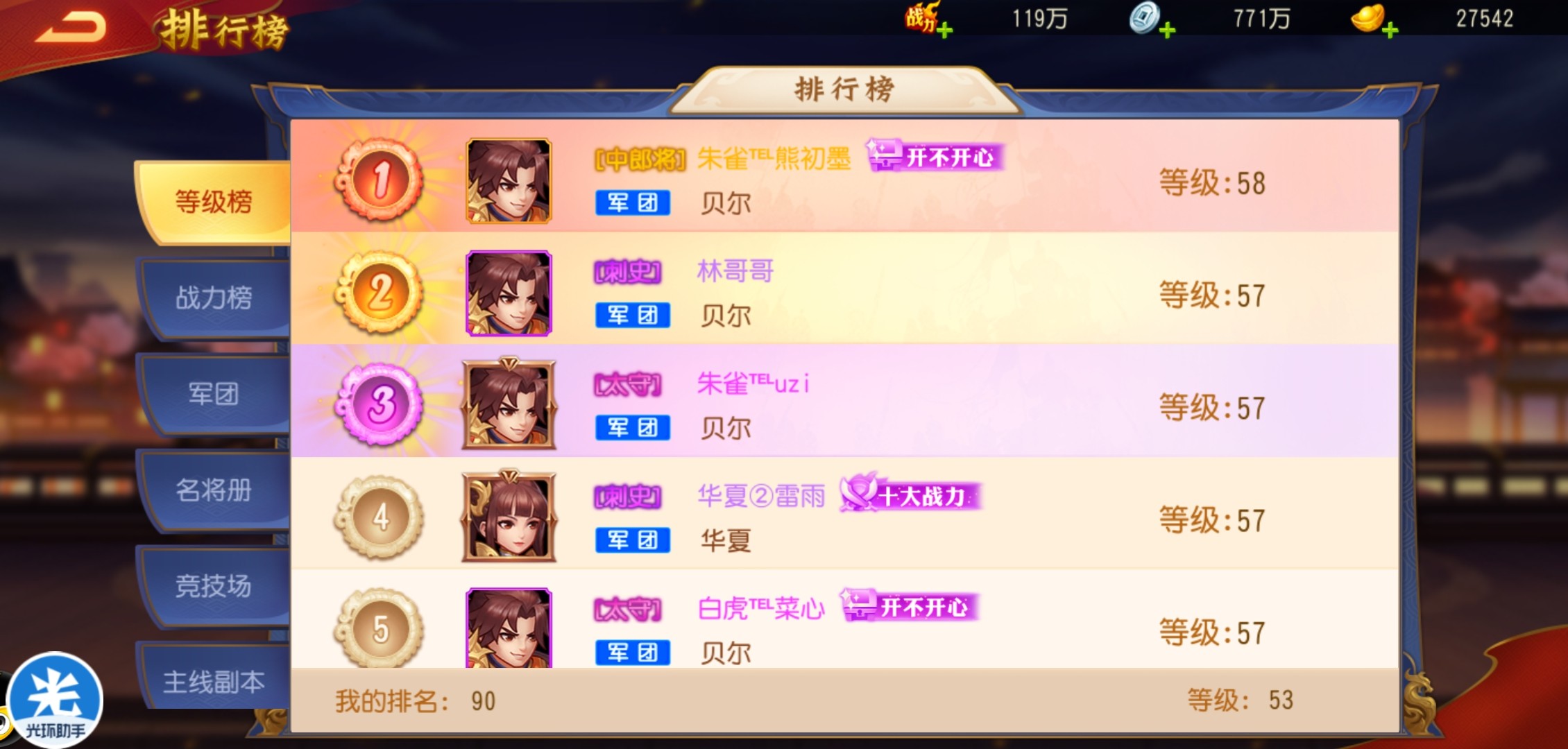 也知道推不过的副本应该调整武将的站位,竞技场挑战也学会研究对手的阵容改变自己的站位。根据敌人输出武将站位的不同,利用高防御的武将对位敌方武将的攻击线路抗伤害,保护自己的输出武将,从而有利的打击对手。