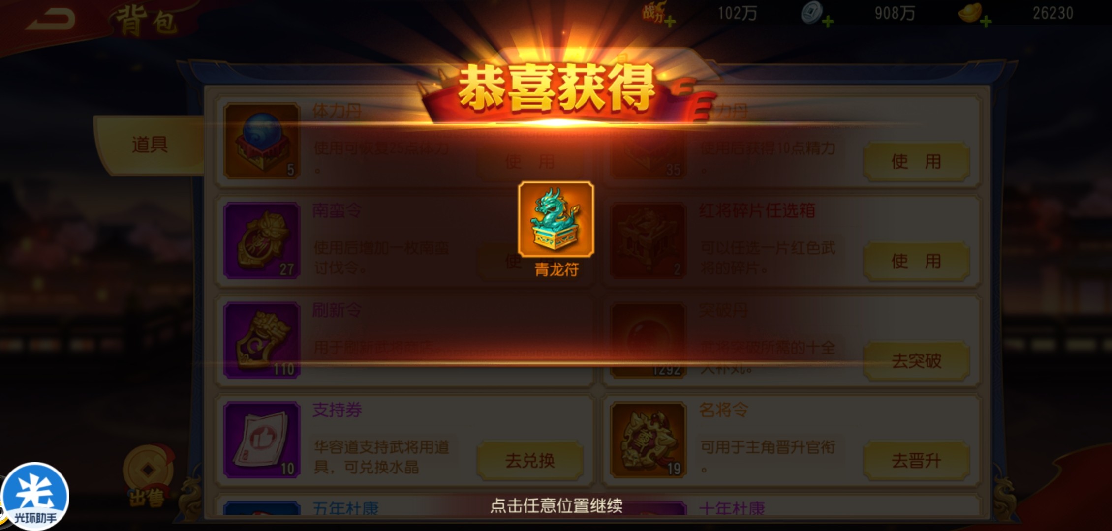 这个宝物的选择需要根据自己上阵武将的羁绊进行挑选,如果上阵武将后期打算更换,这次选择主角武将需要的青龙符就可以了。