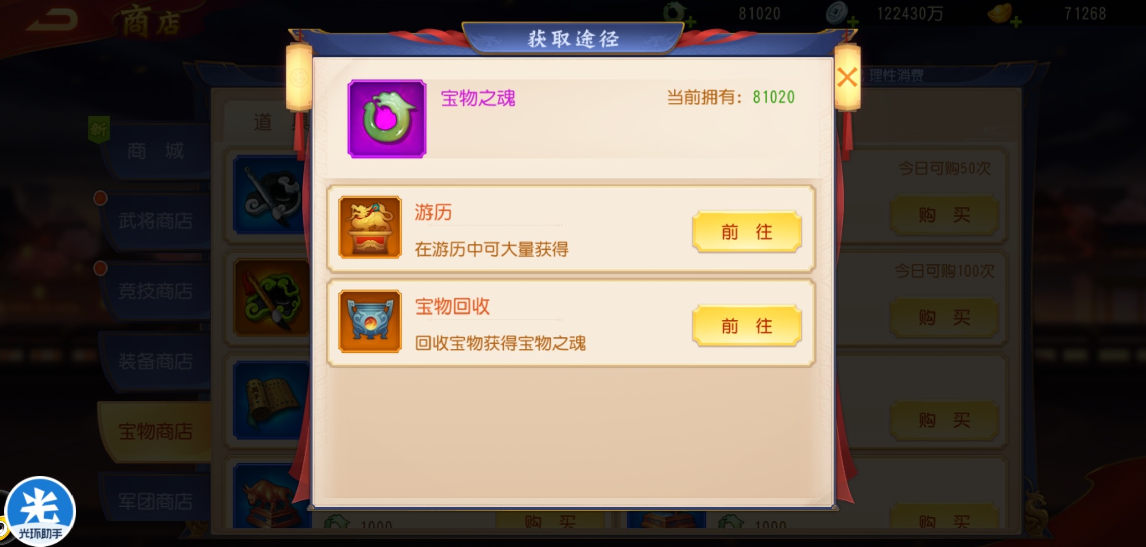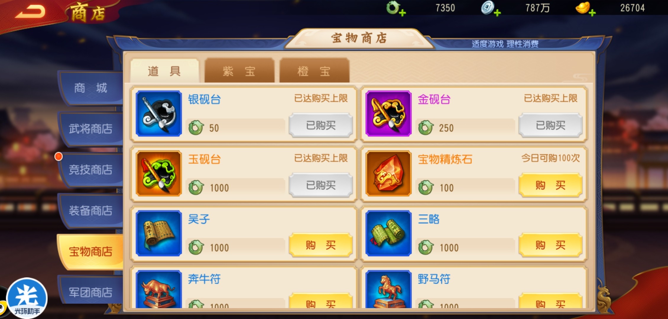 不过鱼头告诉大家,可以不用宝物之魂大量去购买橙色宝物碎片,宝物之魂需要一直在宝物商店中购买砚台,砚台资源后期会非常紧张。