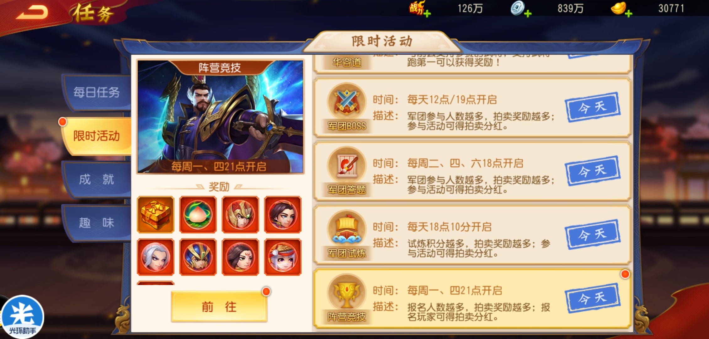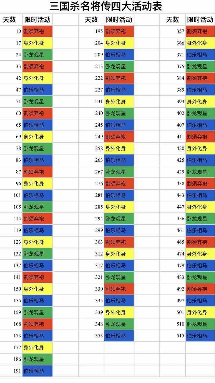 七日活动过后,第10天就是【割须弃袍】活动,后期的活动会随着签到天数逐步开放,鱼头放上一张活动表,供新手朋友参考。