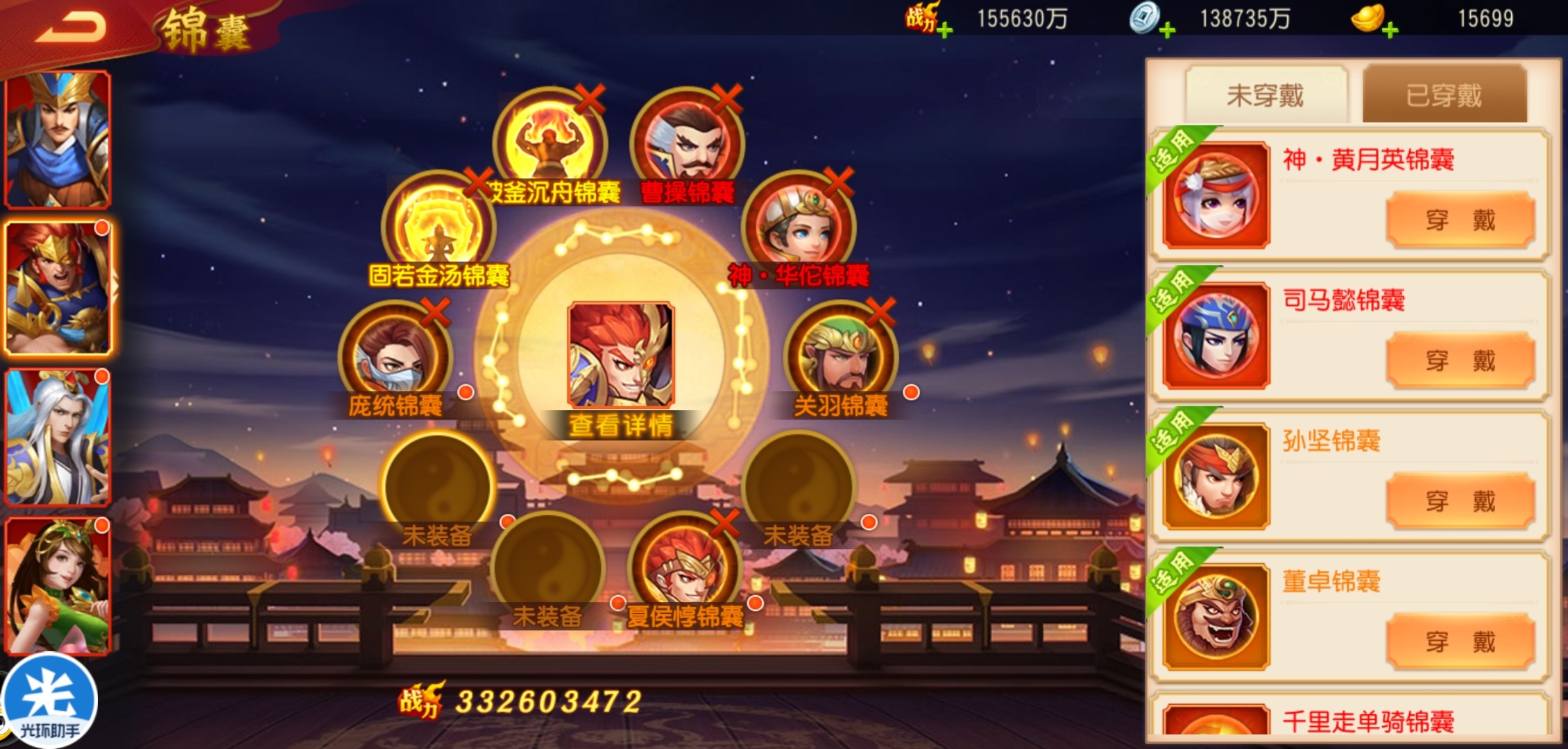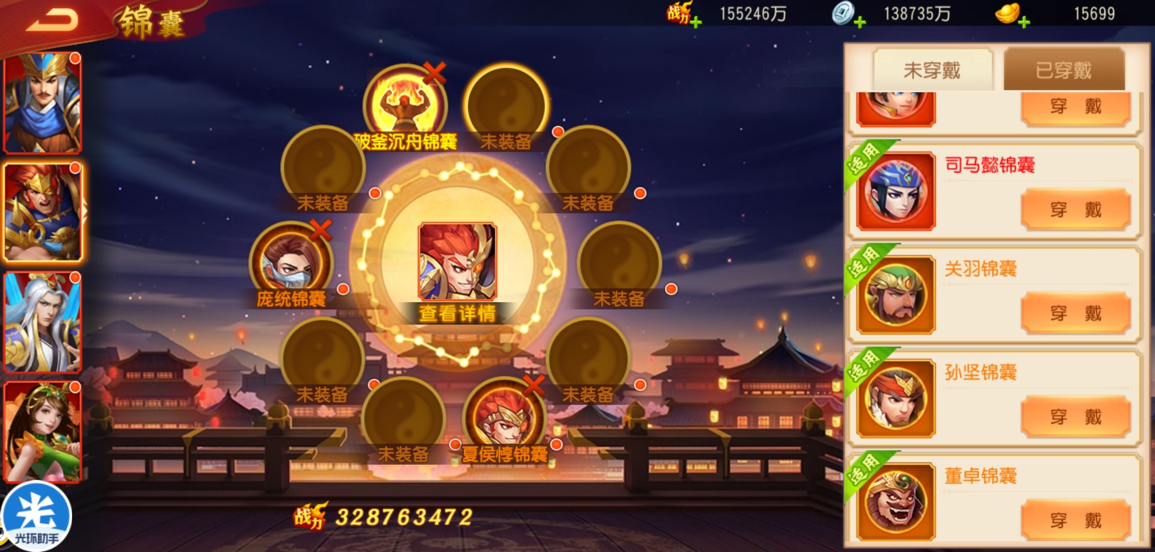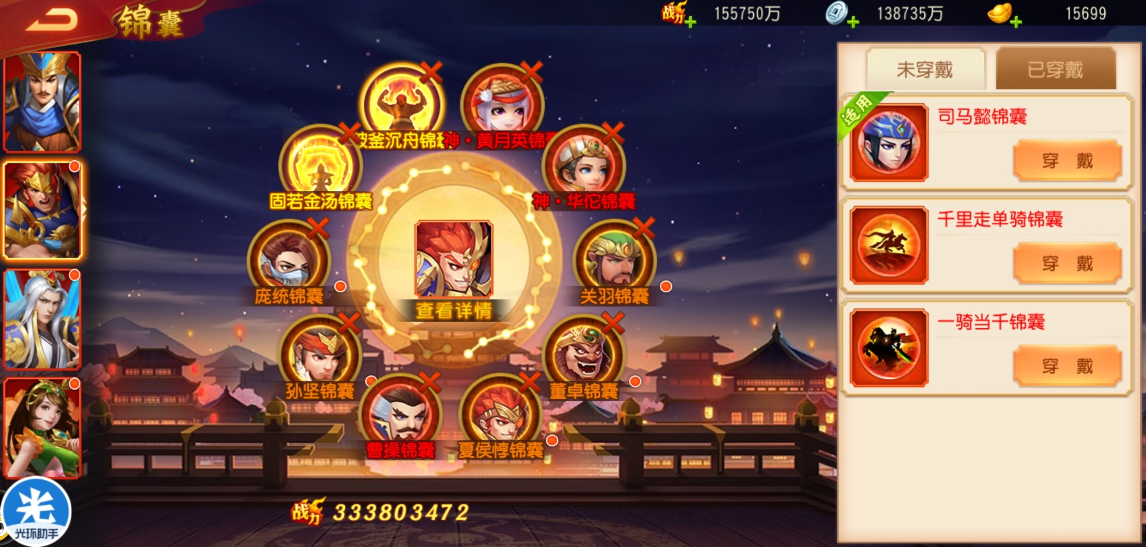 这样的情况同样实用于蜀国铁桶阵、群雄减伤阵,多一些血量,多一些减伤,减少无关紧要的锦囊佩戴,你就会比别人强一分。