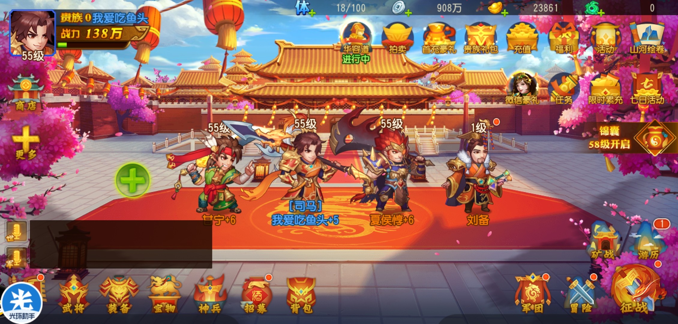 只要平时多收集,武将商店的运气好一些,三天一个上阵武将是可以实现的,鱼头的甘宁、夏侯惇通过碎片收集合成,第七天的时候也达到突破6的水平。