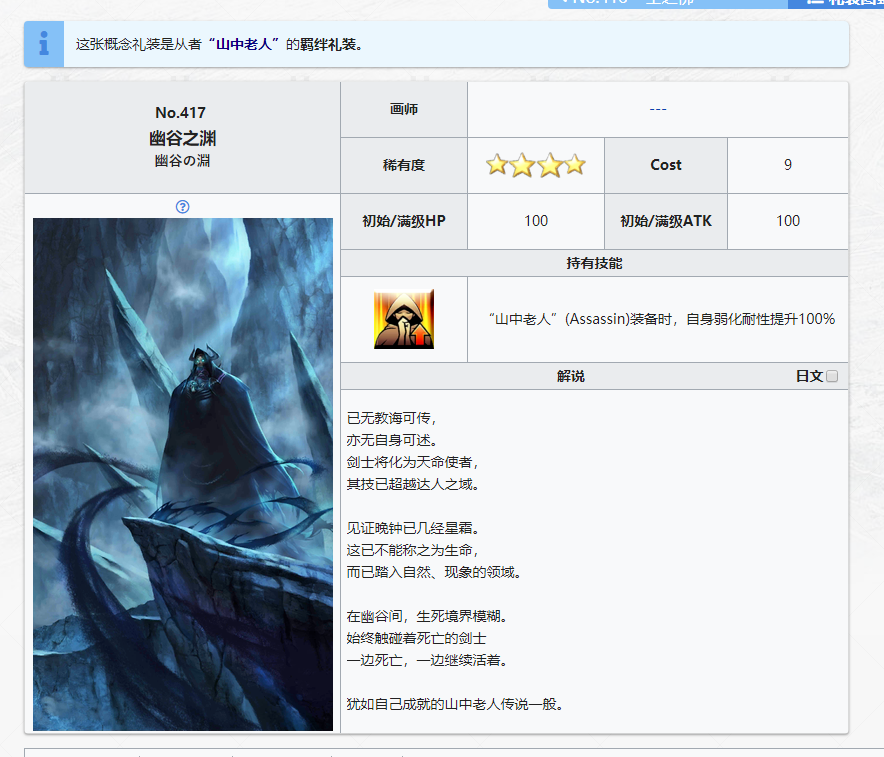 山中老人为历史真实存在的人物,对历史真正存在的人物,原名“哈桑.本.萨巴赫”,历史上的职位也是一名刺客,同时也是一名学者,在历史上领导阿萨辛派。