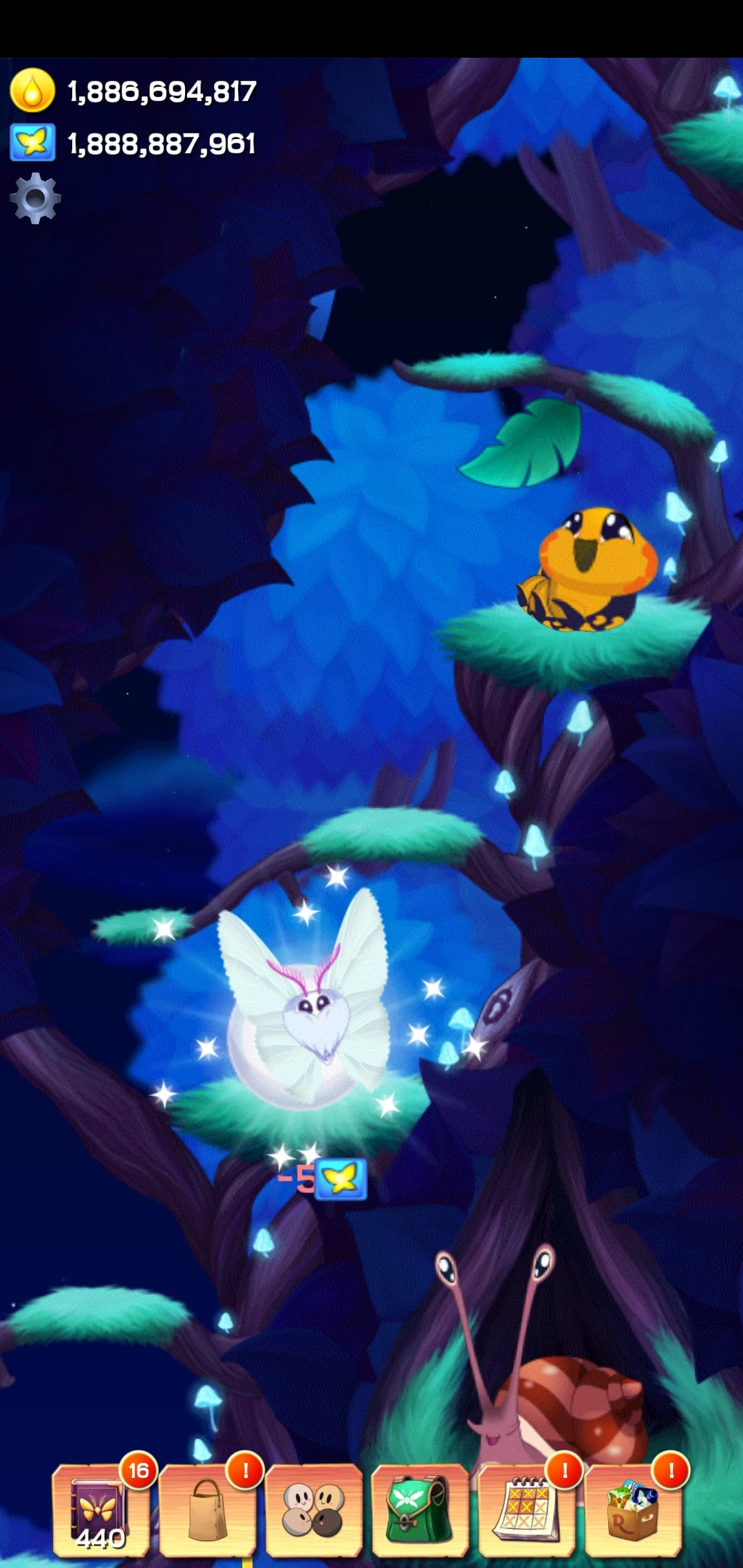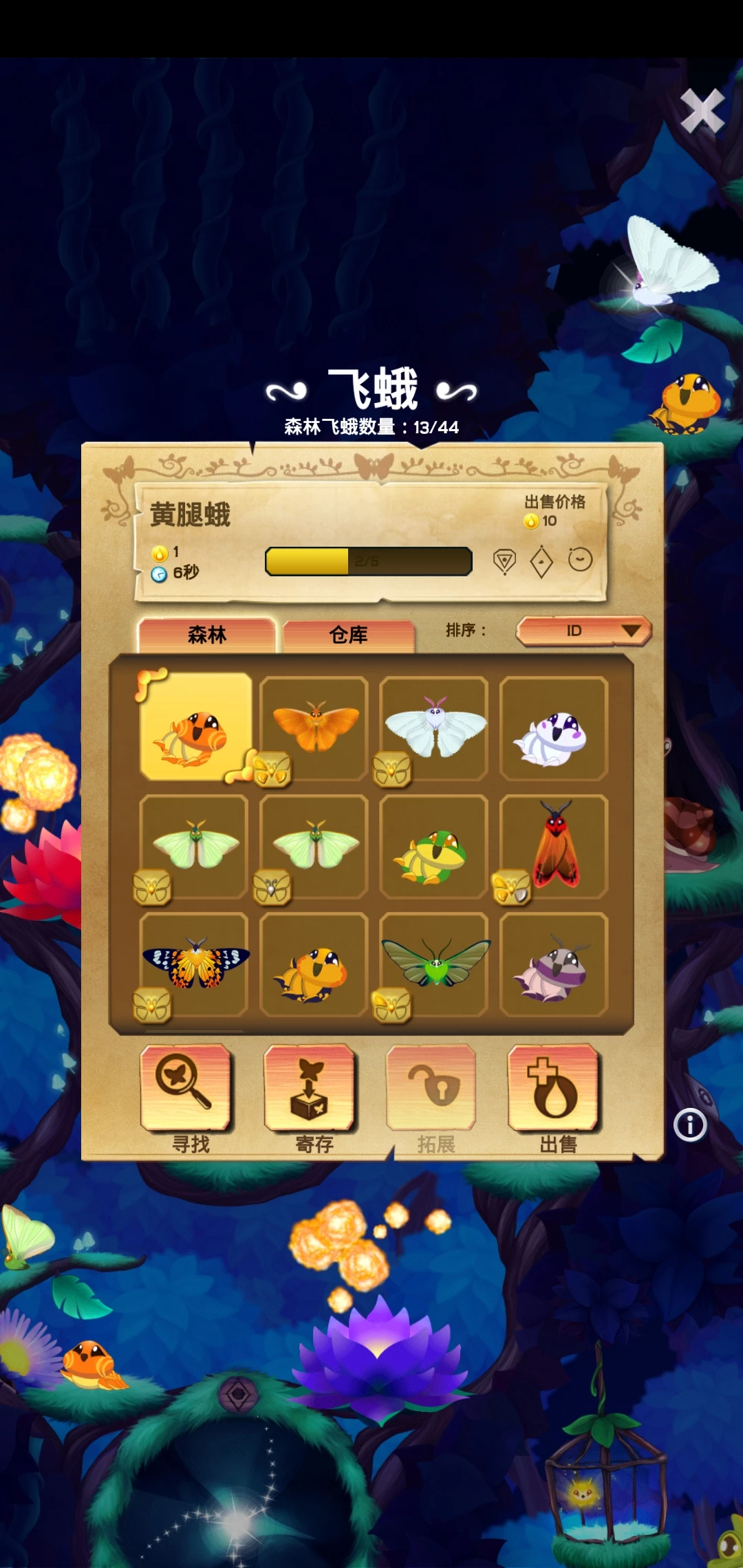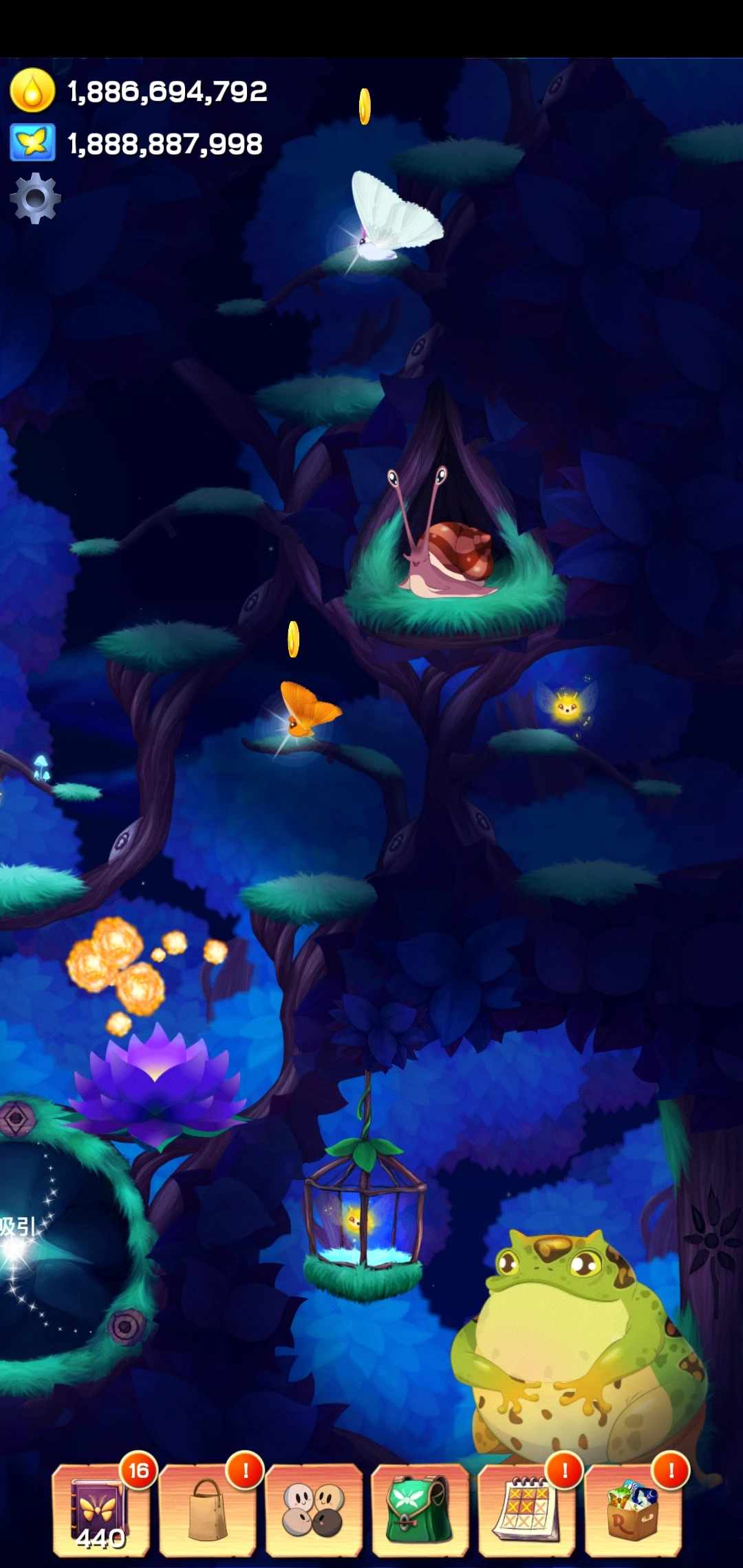 在游戏中还会出现其他类型的动物,点击蜗牛可以开启抽奖界面,花费一定的代价可以获取大量的奖励;而青蛙则在游戏中起着相当重要的作用,玩家逮捕界面中的萤火虫放入青蛙面前的笼子中,再拖动萤火虫送入青蛙的嘴里就会形成花朵,用来辅助生产,花朵同样可以购买,但所需要的花费较大。