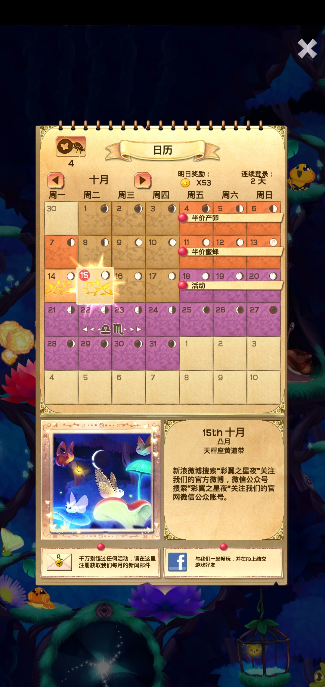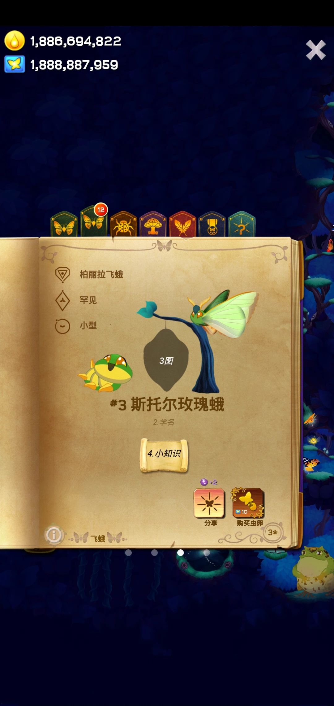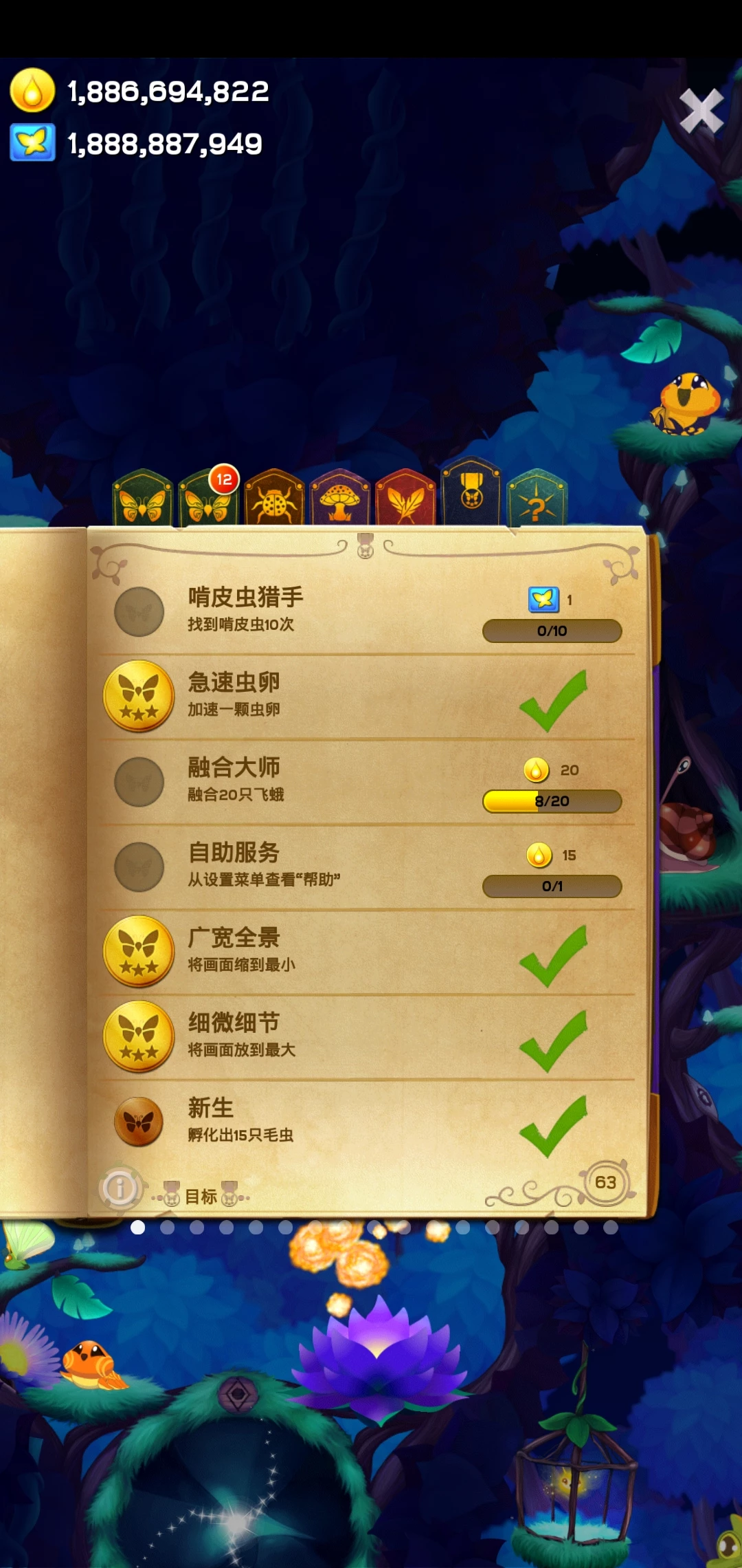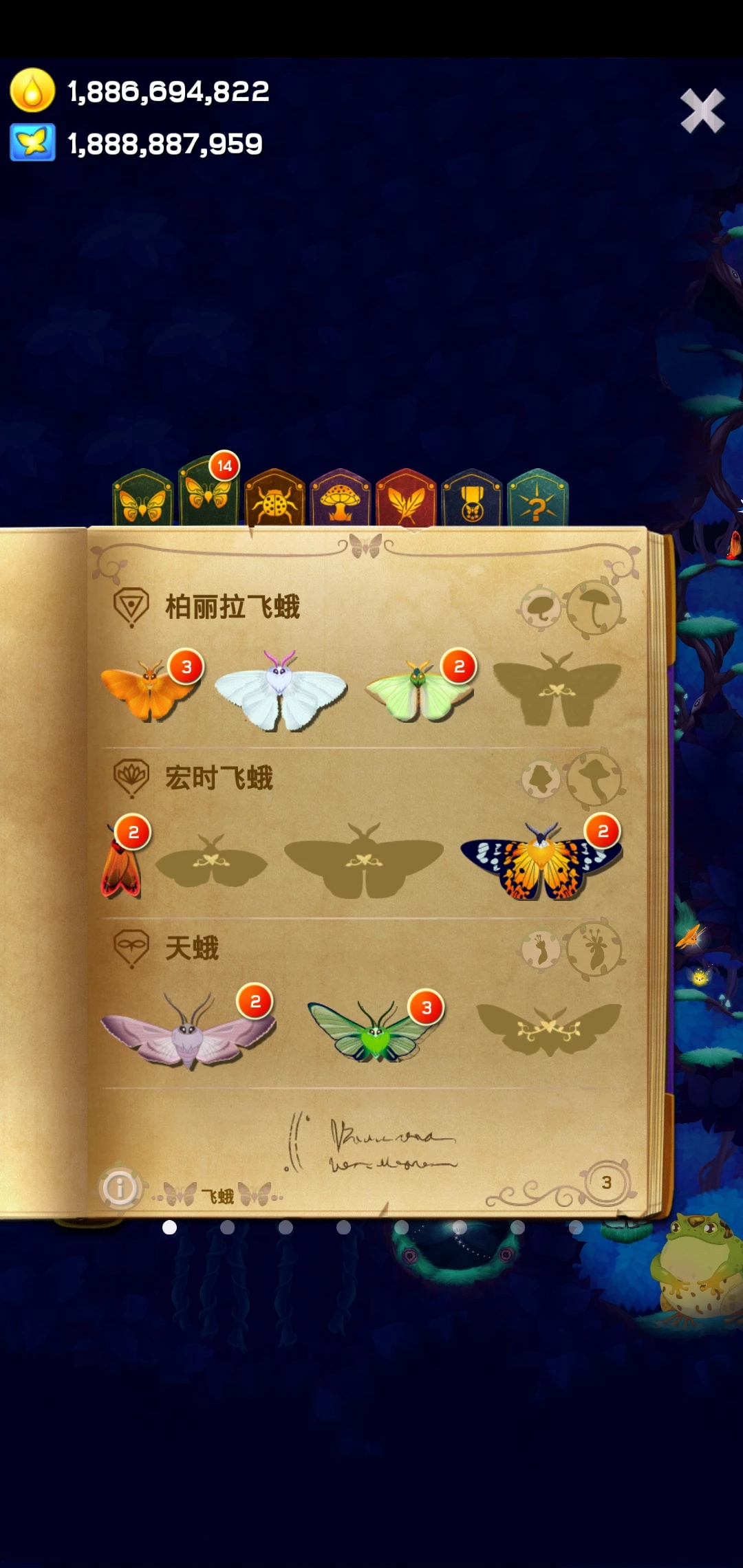 在游戏中的图鉴,玩家可以查看当前拥有的所有蚕宝宝和飞蛾,并且还可以查看其当前的状态,查看其简介。收集不同类型的飞蛾,可以提升成就感,还会完成游戏中的任务,获得游戏中的奖励(其中没有主线任务,大多为一些成就类型的任务)。游戏中还有游戏日历,除去每日奖励之外,一定程度上也丰富了游戏内容。