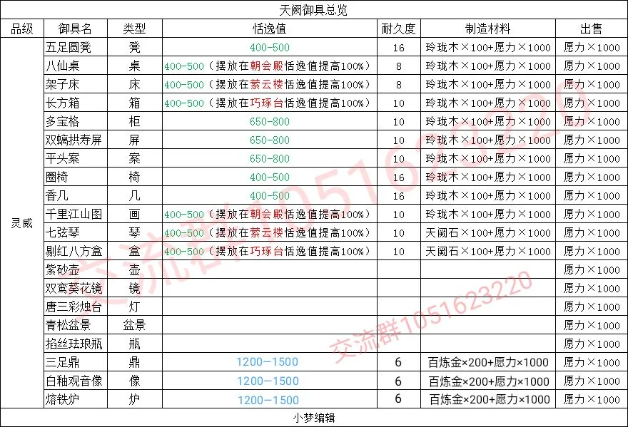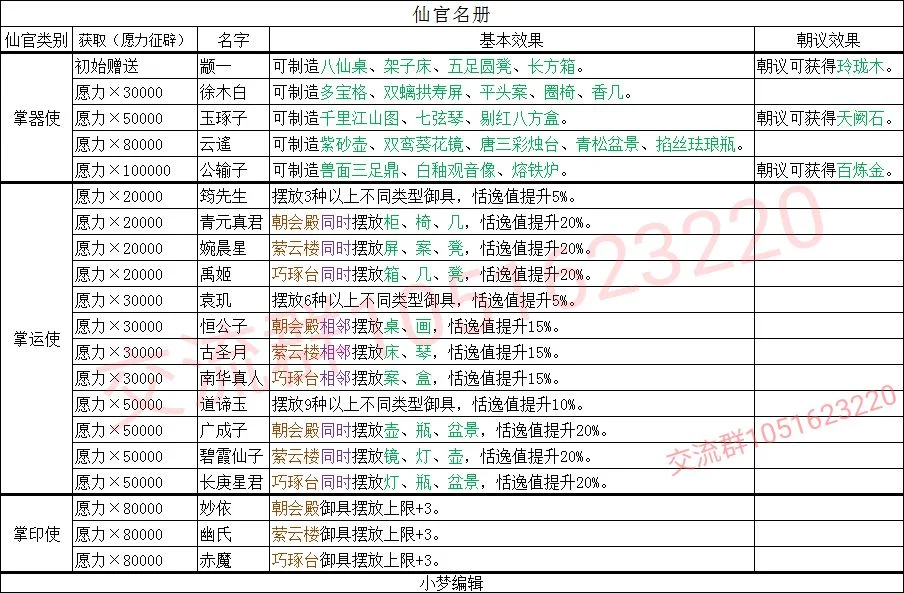朝议(获取御具所需材料)(不同仙宫产出不同)