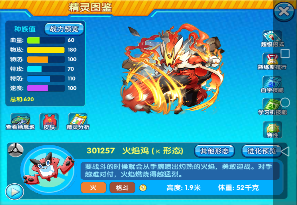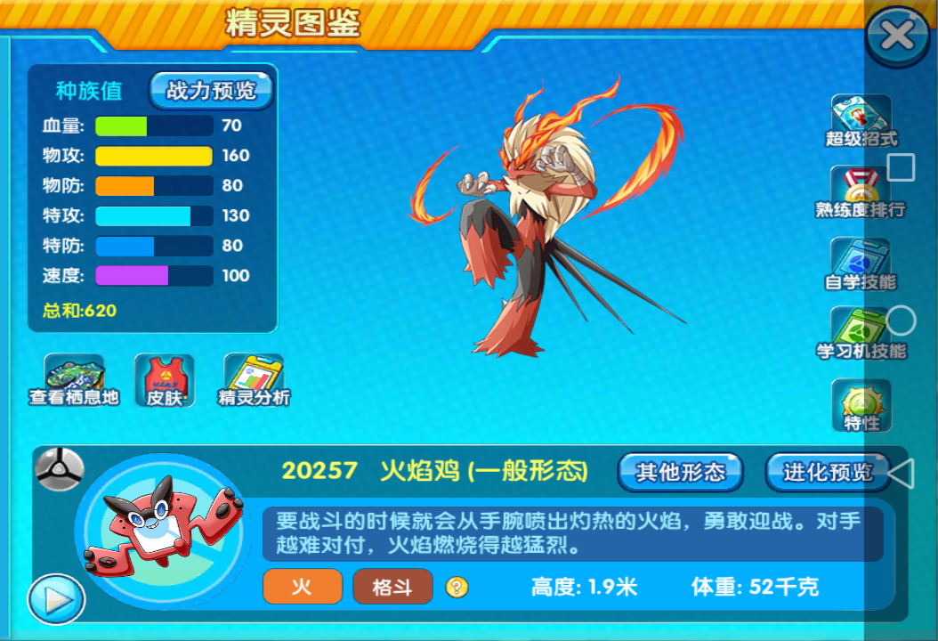 总结分析:火焰鸡搭配这几个队友可以比较好的把自身的弱点给抵消掉,其中,火焰鸟的天气能够帮助火焰鸡把,火属性技能伤害达到最大化。