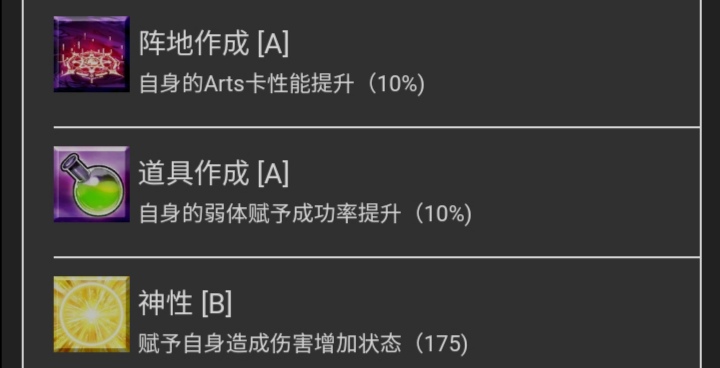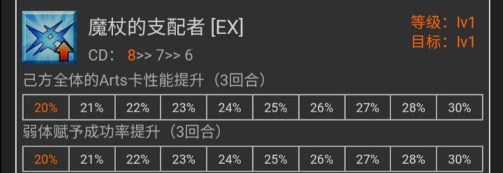 弱体赋予成功率提升,偶尔还是派得上用场的效果,只是和贤王搭的从者太少