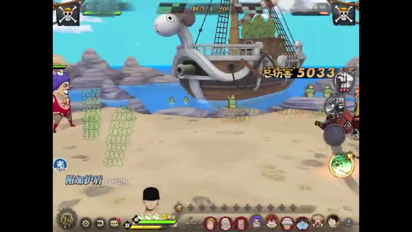输出玩法:3+8狮子歌歌+8大龙卷,开局先来加全队伤害再放8魂终结狮子歌歌。我在实测当中最高终结伤害是50万的狮子歌歌。你们有勇气接索隆一刀?