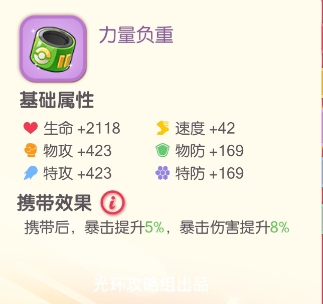 唯一提升暴击方面能力的紫色携带,由于水龙过于依赖暴击,在携带方面的选择没有太多空间