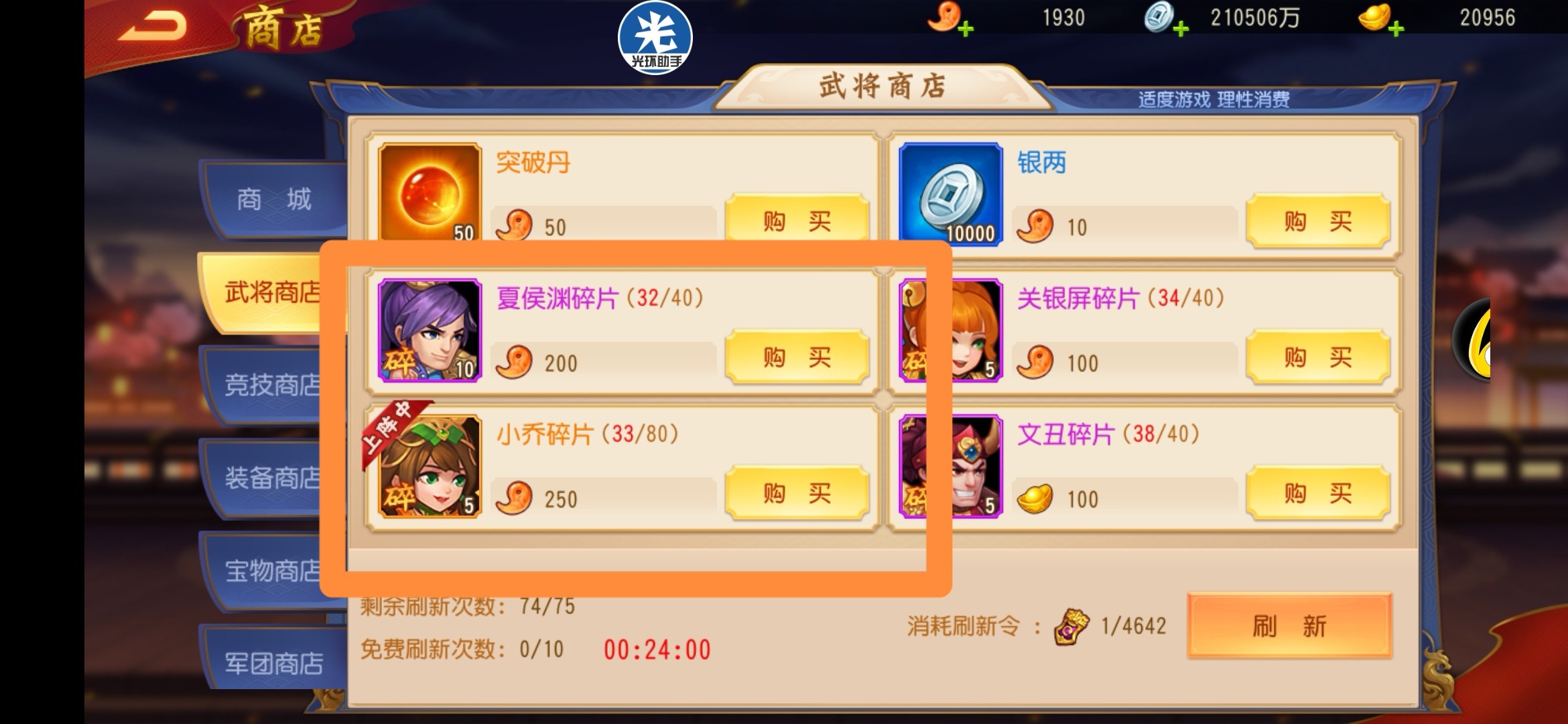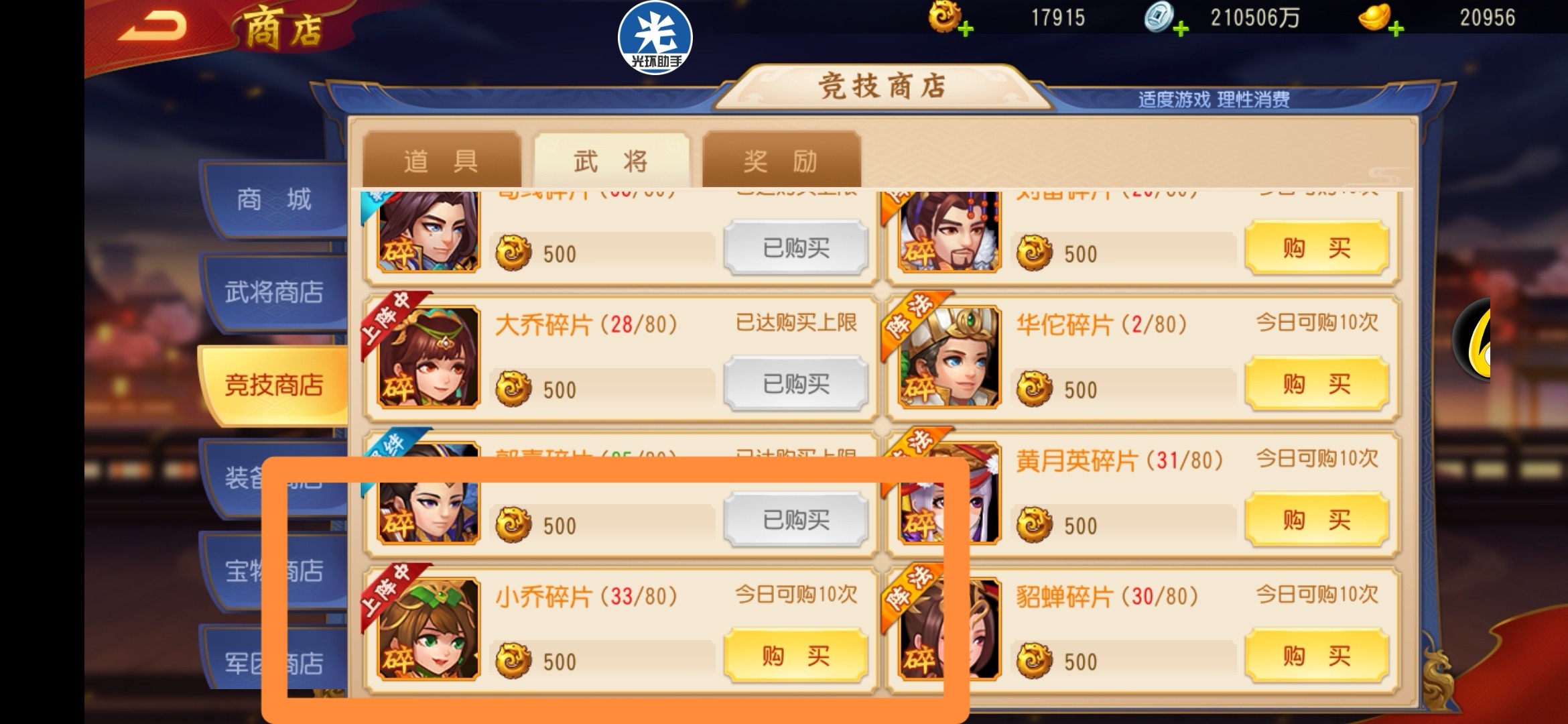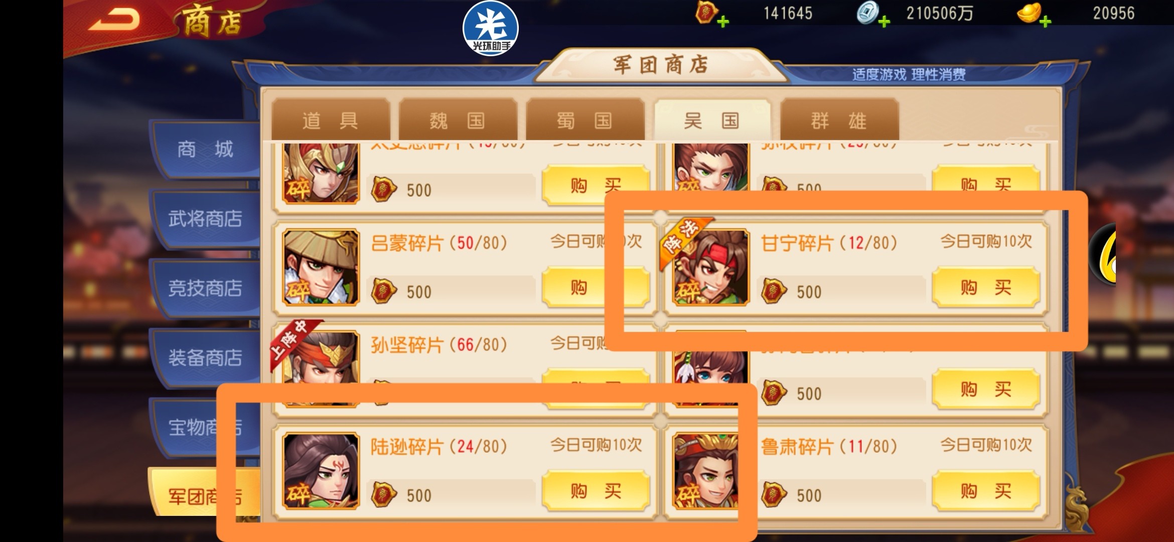新手想一次组成开局阵容可能性非常低。毕竟橙武将都是随机给的。而且我又不建议玩家去十连抽获取完善的开局阵容。那么刚刚开局有什么阵容就用什么阵容。再利用武将商店+竞技商店+军团商店。获取小乔+甘宁+陆逊这3个武将。去组成开局阵容。
