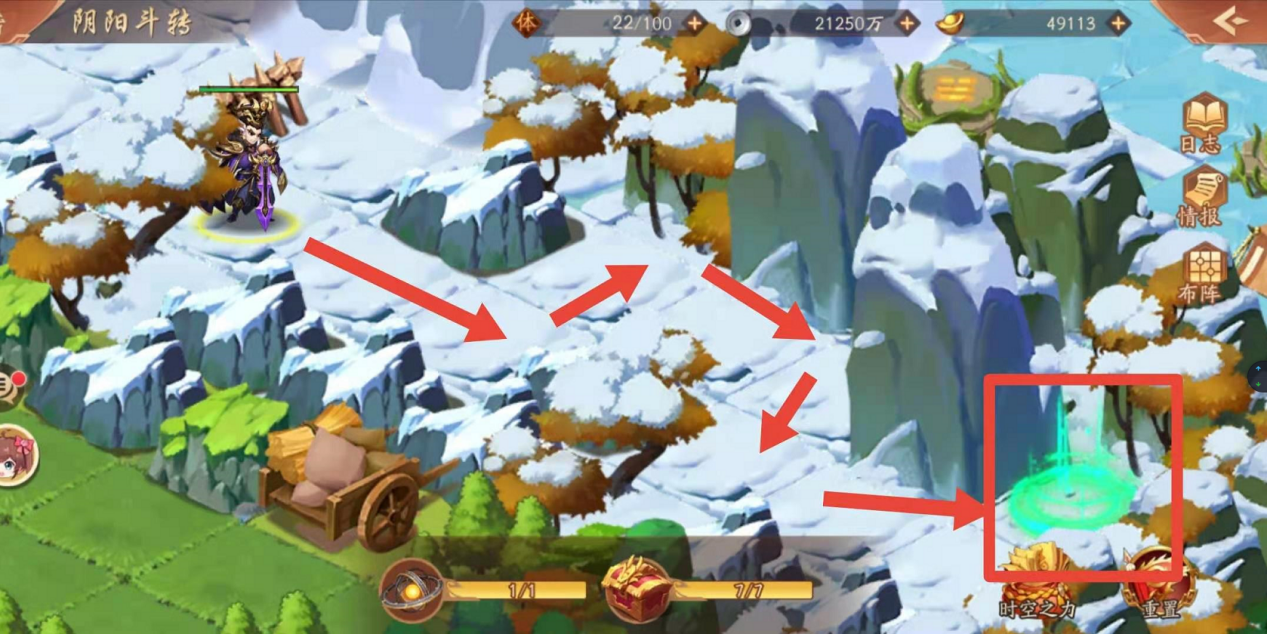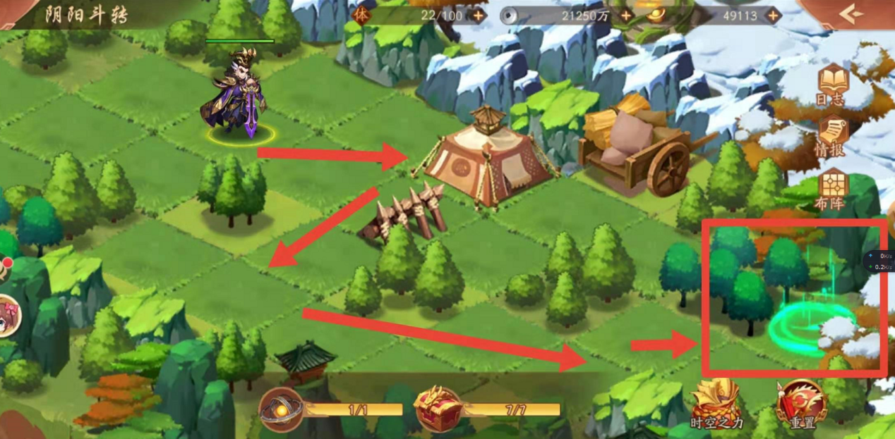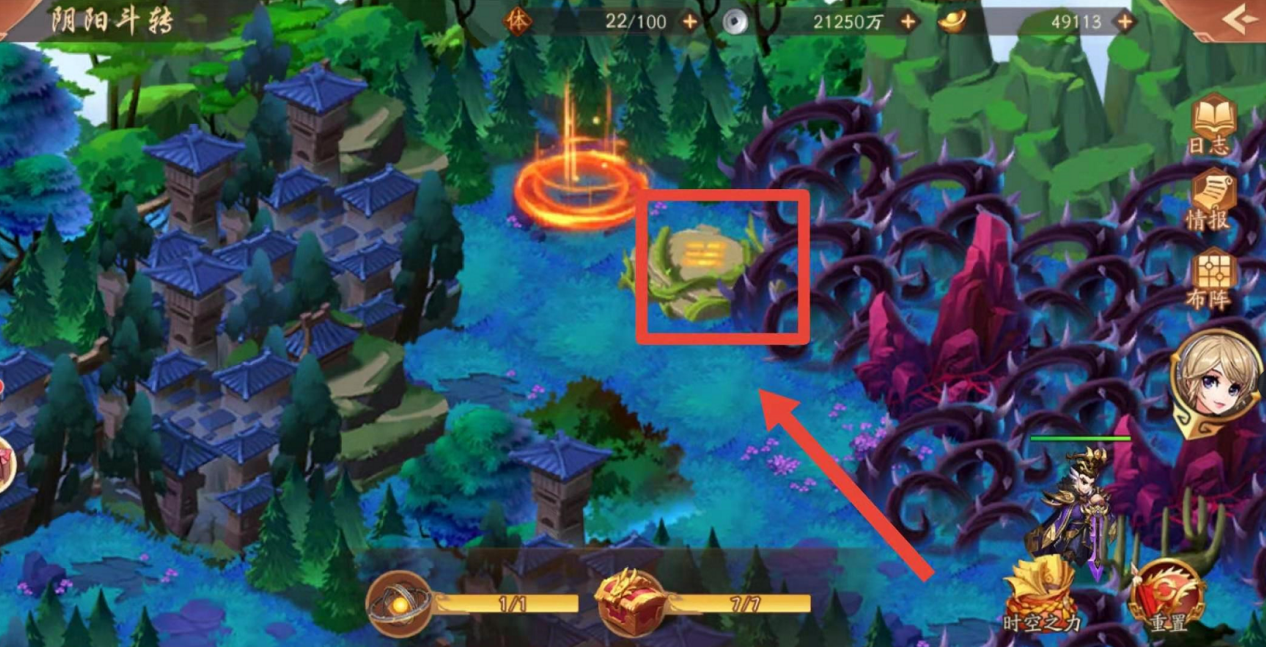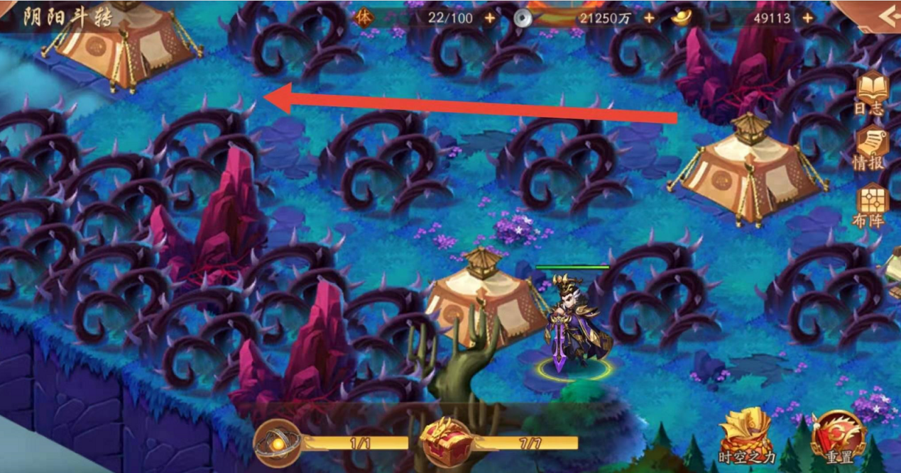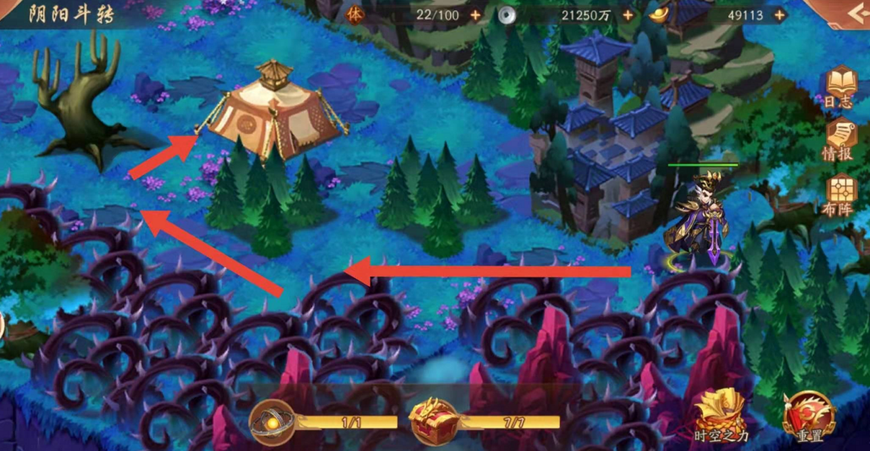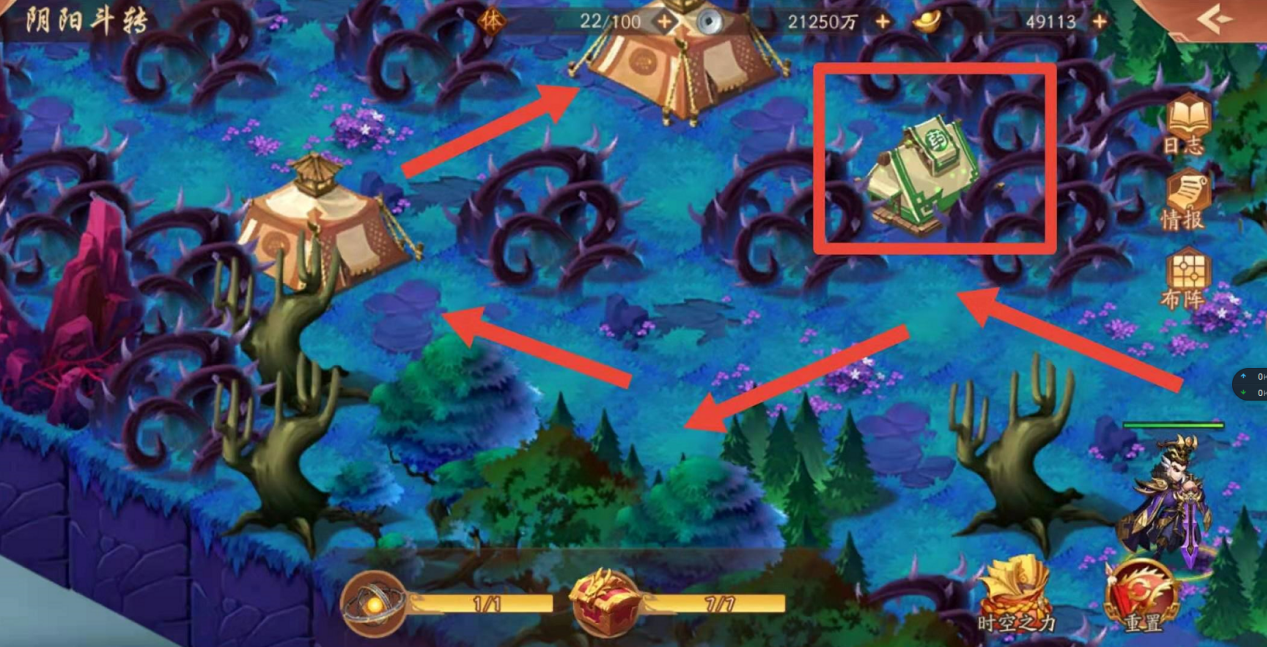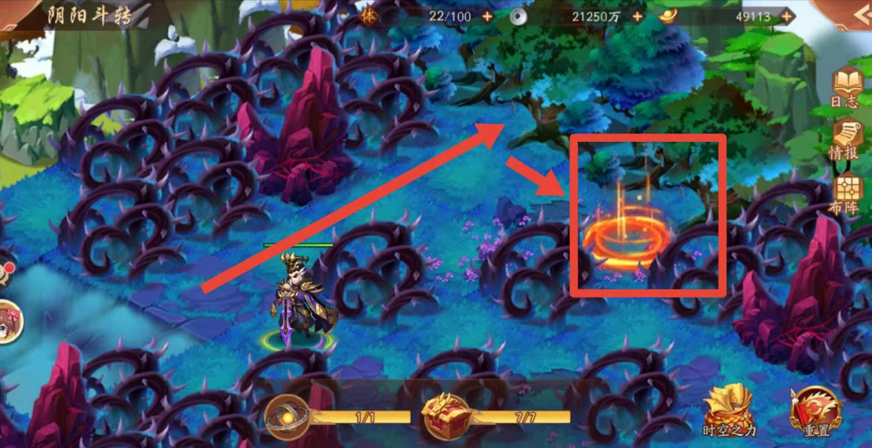 紧接着如下图,小编认为这是最简单的分支地图了,可以按照下图箭头方向找到下一张地图的跳转阵眼,顺利进入即可。