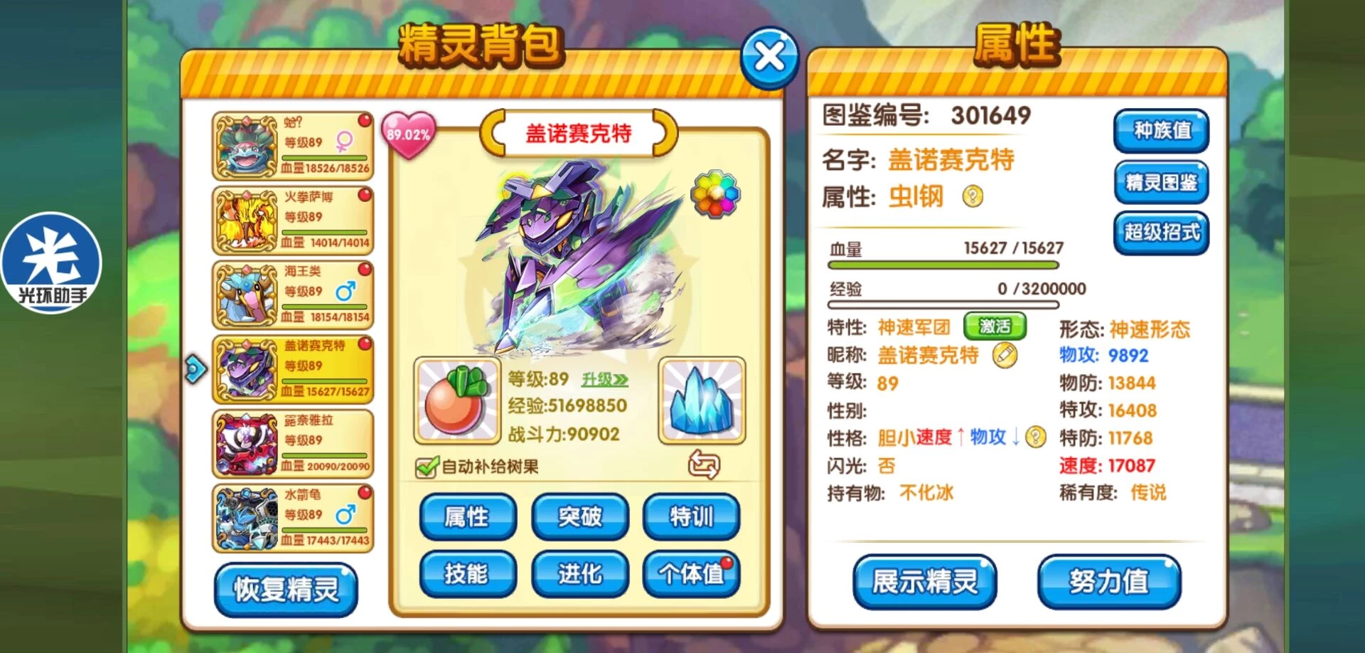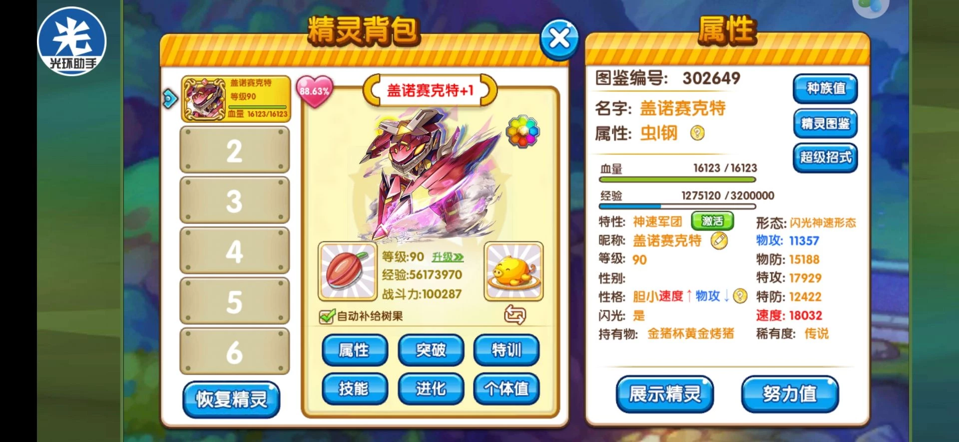 首先,虫神分为闪光和普通两种,种族方面还是有一定差距,毕竟一只30高级卷,而一只要氪金获得,下面是普通和闪光满配面板,大家可以参考。