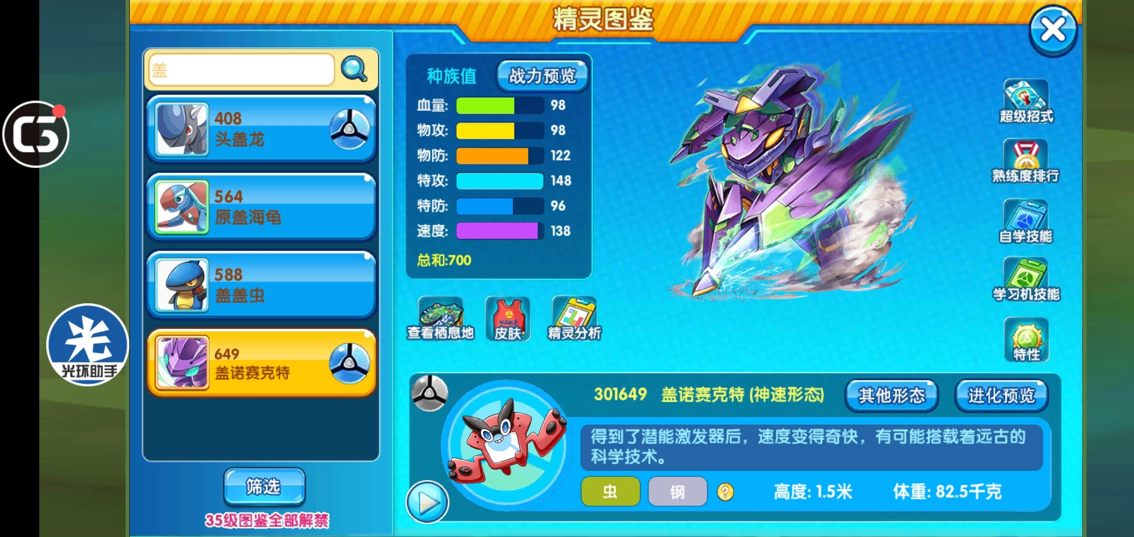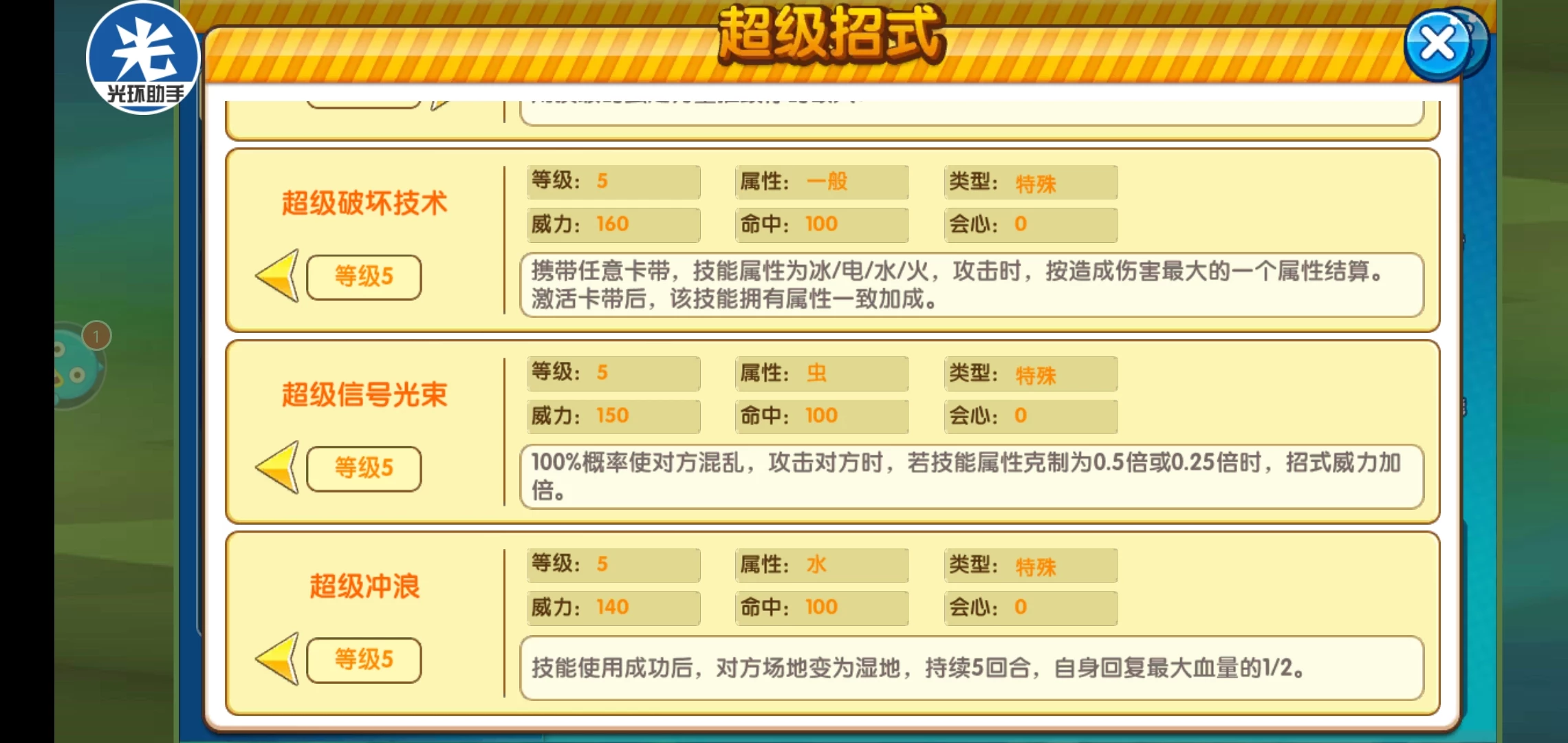 还有一个是超级冲浪,效果为技能使用成功后,对方场地变为湿地,持续5回合,自身回复最大血量的1/2。这里解释下湿地效果,就是场上精灵速度减小,相当于变相一速,如果是水卡虫神搭配水滴还可以享受加成,对于盖诺赛克特的神速军团来说是个不小的辅助。