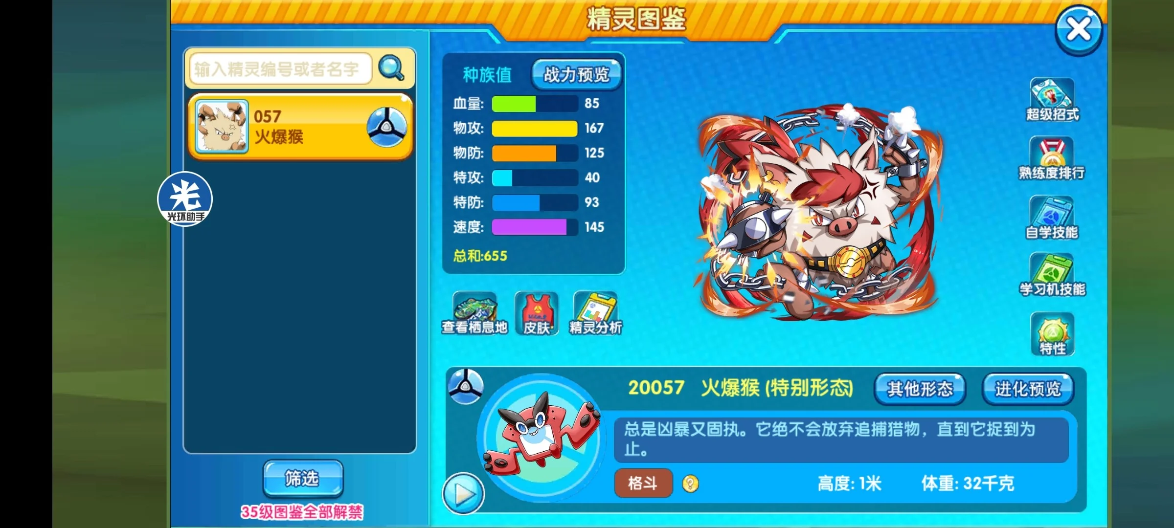 前言:大家好,我是@白,提前火爆猴这个宠,老玩家肯定印象深刻,因为这个宠属于很早一批给与闪光的宠物,当时都没mega,大家也玩的很开心,主要是它用来打工会战也非常不错,不过本次为了针对萨狗,策划也终于放出来了,新特性就是为了针对萨狗而来,如果带新道具爆裂拳套,影子分身萨狗也不怕。