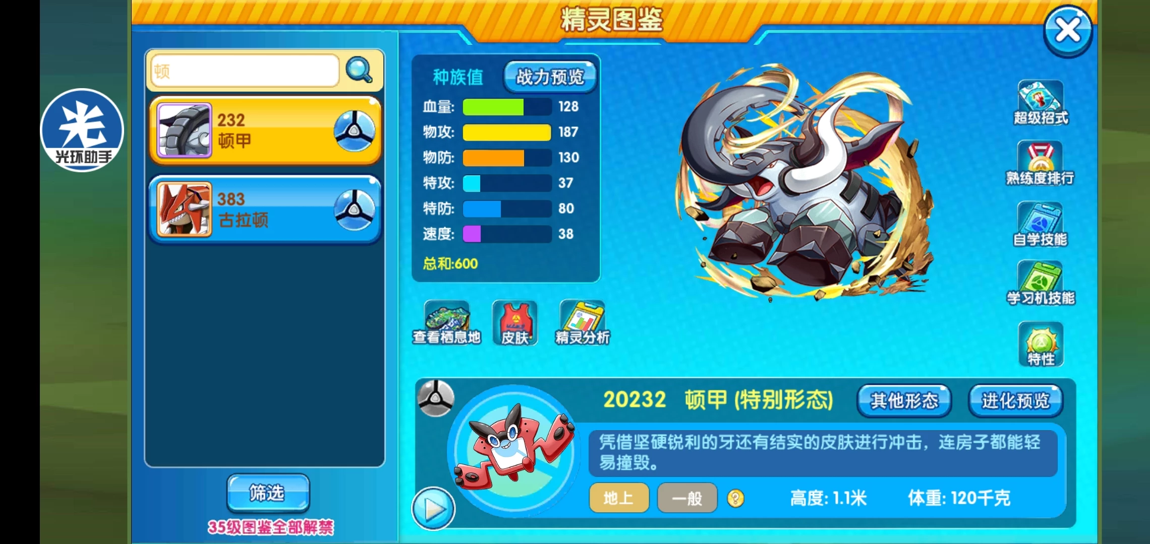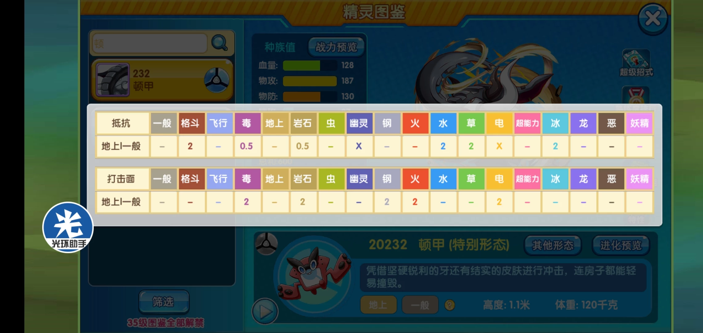 可以看出它的学习面更广,而且还有甲壳回复,配合特性持久力打持久战特别强,强化手段还有集气,可以说策划对它还是很友好,作为一个物盾兼清钉的宠物很不错,而且本系地面攻击也不弱。