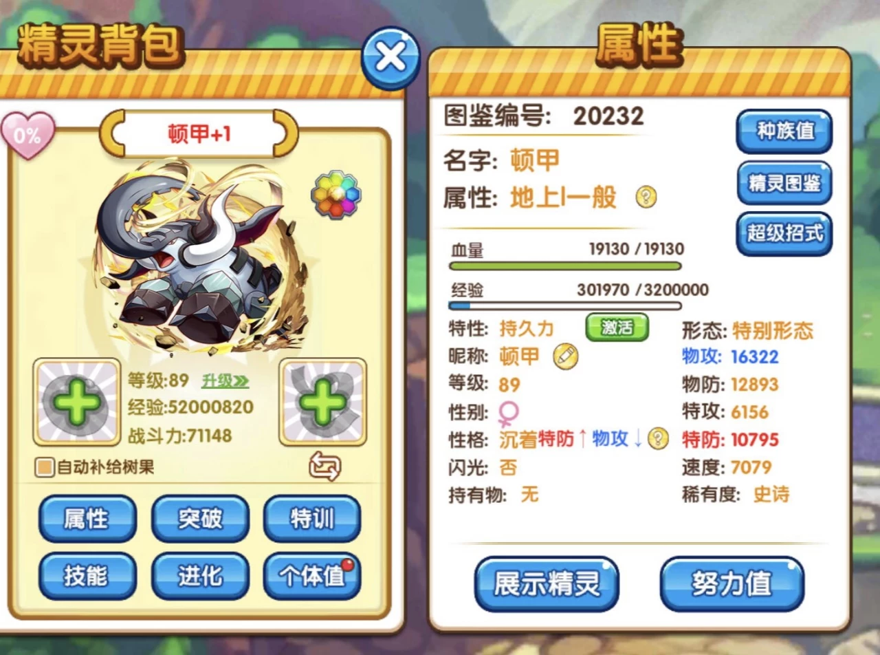 努力:血量+物防/特防