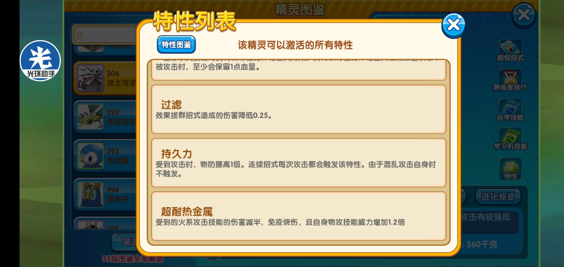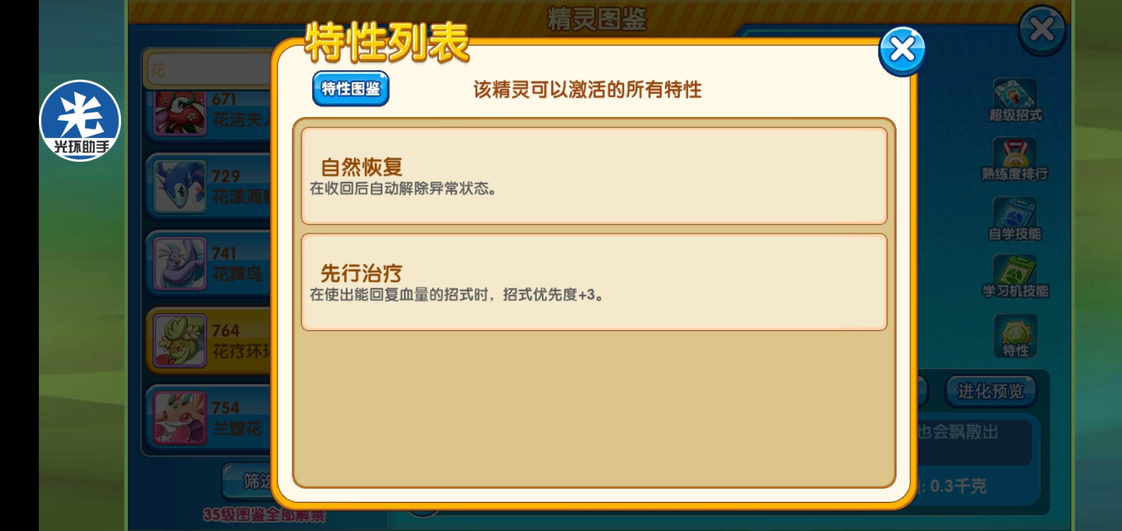 ⑤技巧达人:该特性的精灵使用带有自身能力下降副作用的技能时,能消除副作用的影响