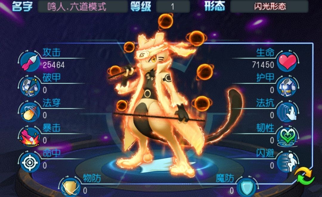 接下来我们来说6道,首先六道高阶之后是不会收到伤害的,只会消耗他的查克拉,那么我们来看他的攻击,每次攻击敌人会造成20倍的普攻伤害,鸣人的普攻系数为380,已经高出很多宠物的必杀系数,且它的攻击目标为多个目标,刷图时一次攻击相当于20次。