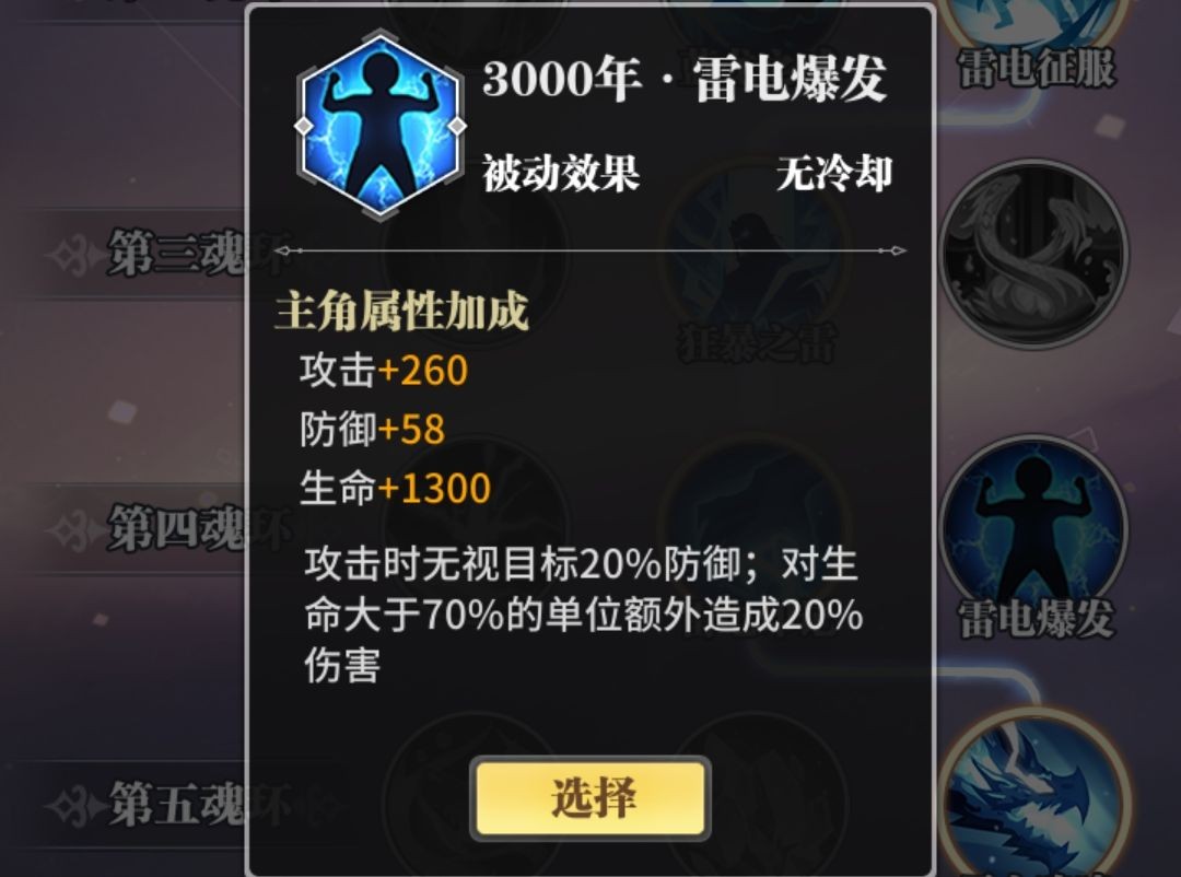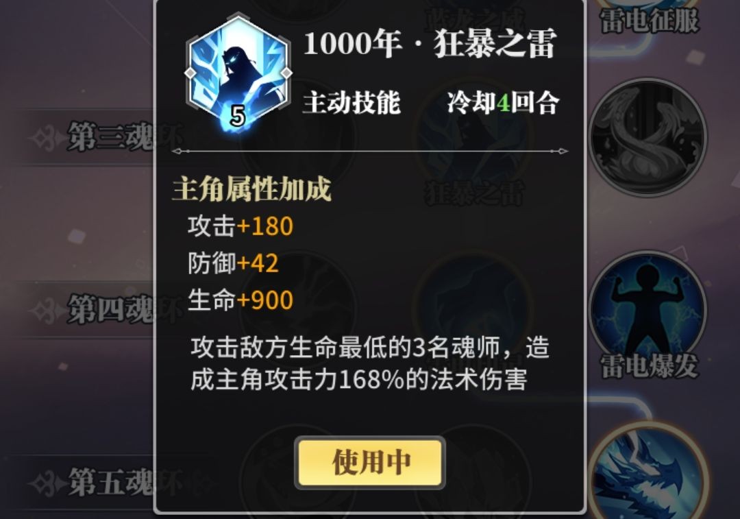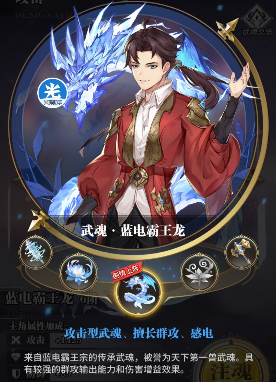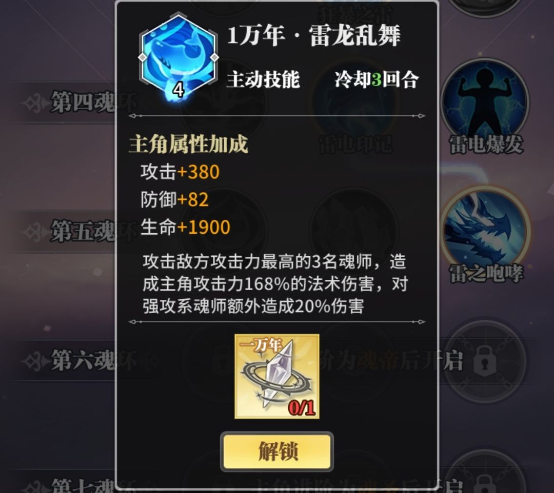 将会对生命值大于70%的魂师,额外造成20%的伤害,可在前期大幅度提高自己的额外输出能力。 第五魂环:雷龙万舞