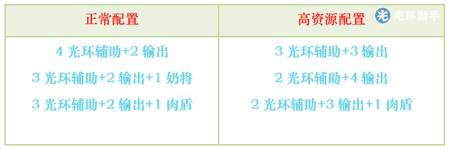 6、无论是平民还是土豪,手中的资源都有限,能堆出来的输出将也都有限!到了后期成型之后,合理的阵容配比应该是像以下的配置这样的: