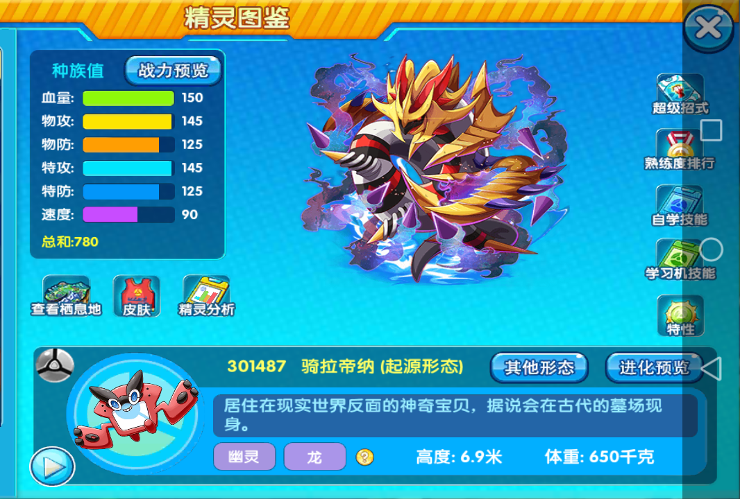 这是鬼龙的另外一种形态偏向于输出,在之前的版本内,依靠超级招式,超级影子切割,真可以说是上打土豪下打平民,可以说是风光无限,但是到后面随着针对的宠物越来越多,再加上比较肉的精灵也越来越多,现在的鬼龙,无论是输出还是辅助都比较难以接受了,目前只有少量真爱玩家,还得继续玩说实话,鬼龙只要找到机会把对面的天敌处理掉。其实自身依靠超级影子切割依旧是推队的存在