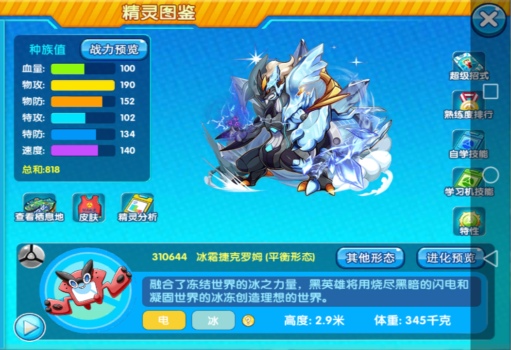 这是合体黑龙的另一种形态,属性是电和冰,弱点比较多,但是打击面还是比较优秀的,由于自身保留了电属性,所以也保留了雷击的本系加成的伤害,但是这个形态也有非常不好的点,就是弱点比较多,非常的容易被地面所克制,隐藏力量冰这个技能虽然说有个本溪的加成,但是威力依旧是很低目前的冰属性物理技能很多,他都是不能学的这样他在技能方面处于十分的尴尬,所以说这个形态虽说打击面丰富,但是弱点也比较明显所以说才导致很少的玩家在玩。