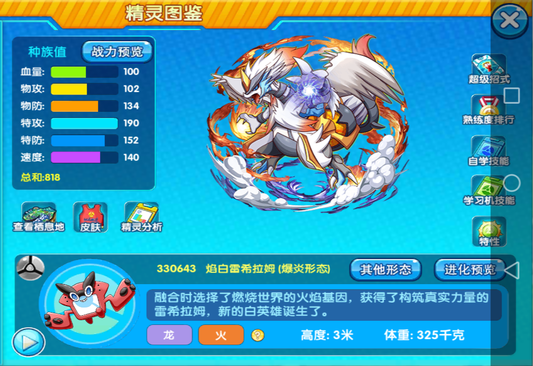 这是雷希拉姆和酋雷姆融合的另外一种形态,属性是火和龙,保留了青炎本系加成的伤害,同时自身的弱点也是不少的。