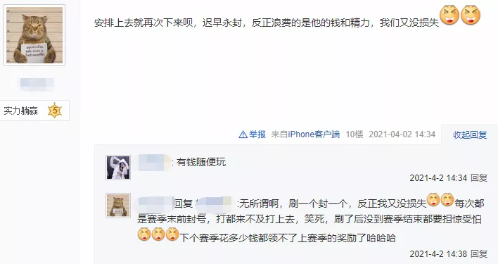 网友纷纷回复说“这是此地无银三百两!”“自爆卡车来啦”“如果楼主真的误封,可以去拳头官网申诉一下”