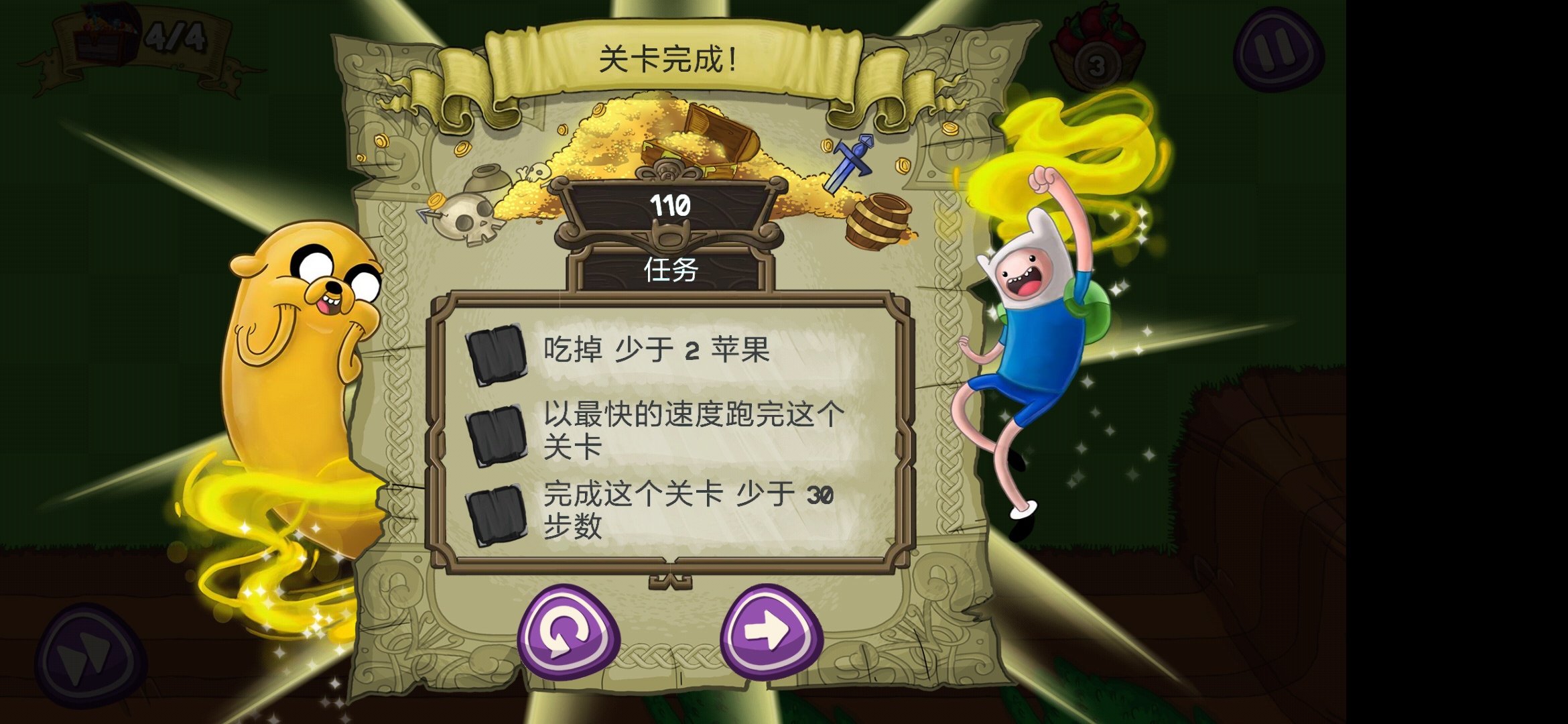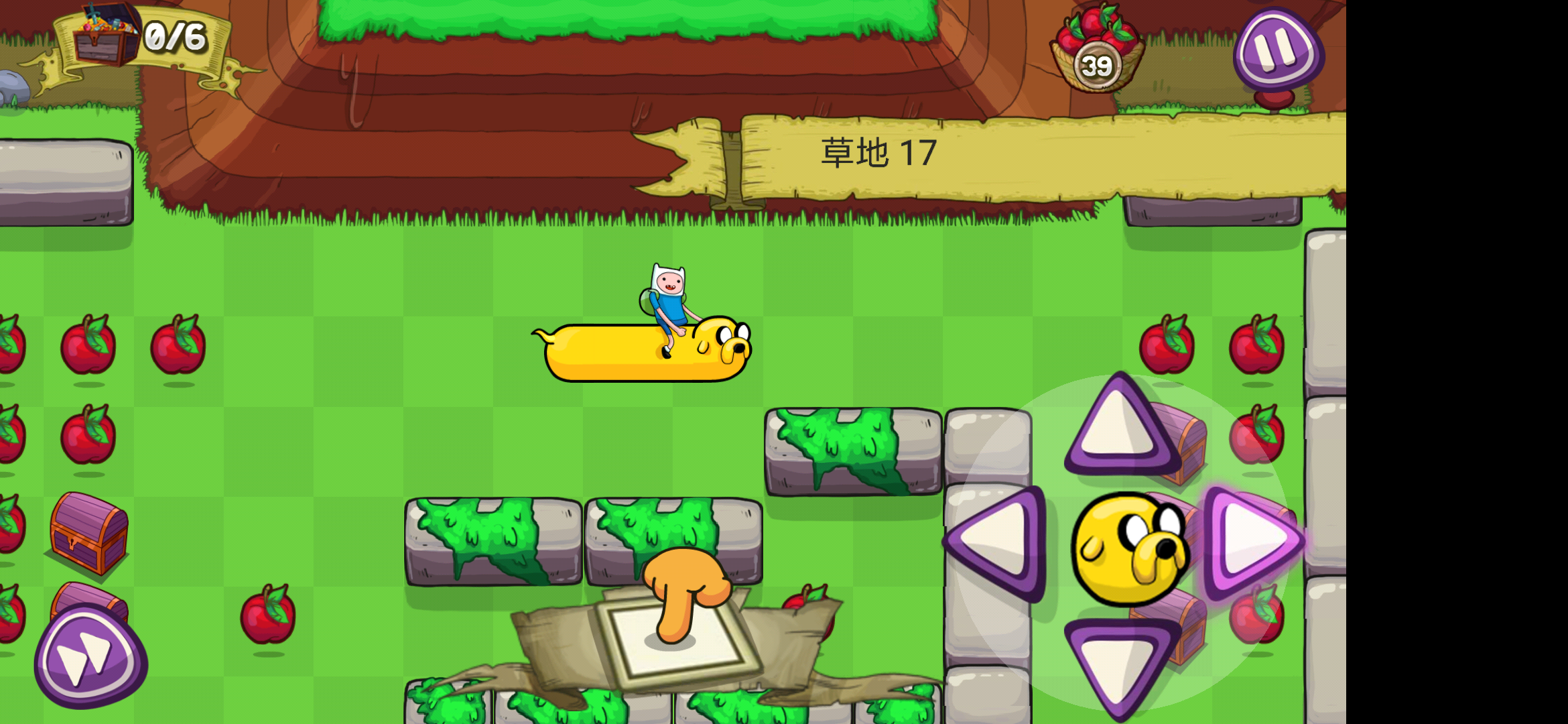 当贪食蛇遇上冒险!它们碰撞出的火花不仅仅只有崎岖的地形,苹果是贪食狗最爱的食物,吃了苹果之后狗子就会变长,为什么要变长?当然不仅仅是为了好看,还有特殊的关卡任务要求,只有吞食到足够多的苹果才能获得开启下一关的钥匙,但游戏的目的可不仅仅是带狗子去“野餐”,寻宝时间当然不能错过宝箱,在一定的步数之内收集图中的所有宝箱及水果方可完成任务。