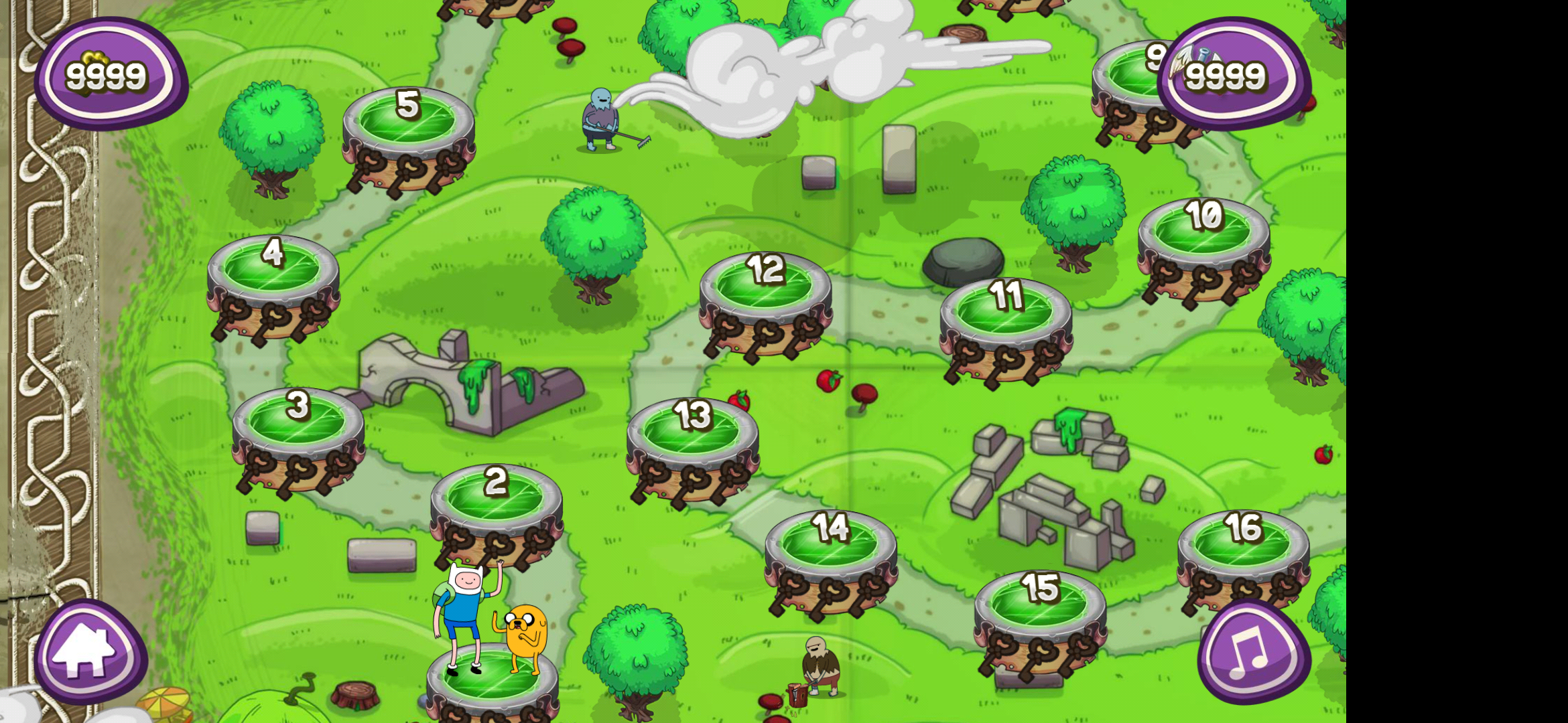 从前我们用诺基亚的按键操控贪食蛇的脑袋,如今随着手机的进化,在如今的全面屏手机上已经找不到按键的存在了,好在触屏手机模拟了上下左右四个方向键的遥杆,另外基于全面屏的特性还推出了滑动改变方向两种操控方式,和老版贪食蛇不同的是《寻宝:冒险时间》中的像素单元格更大,贪食狗的操作得以更加精密、准确,但臃肿、不灵活的缺点也随之而来。