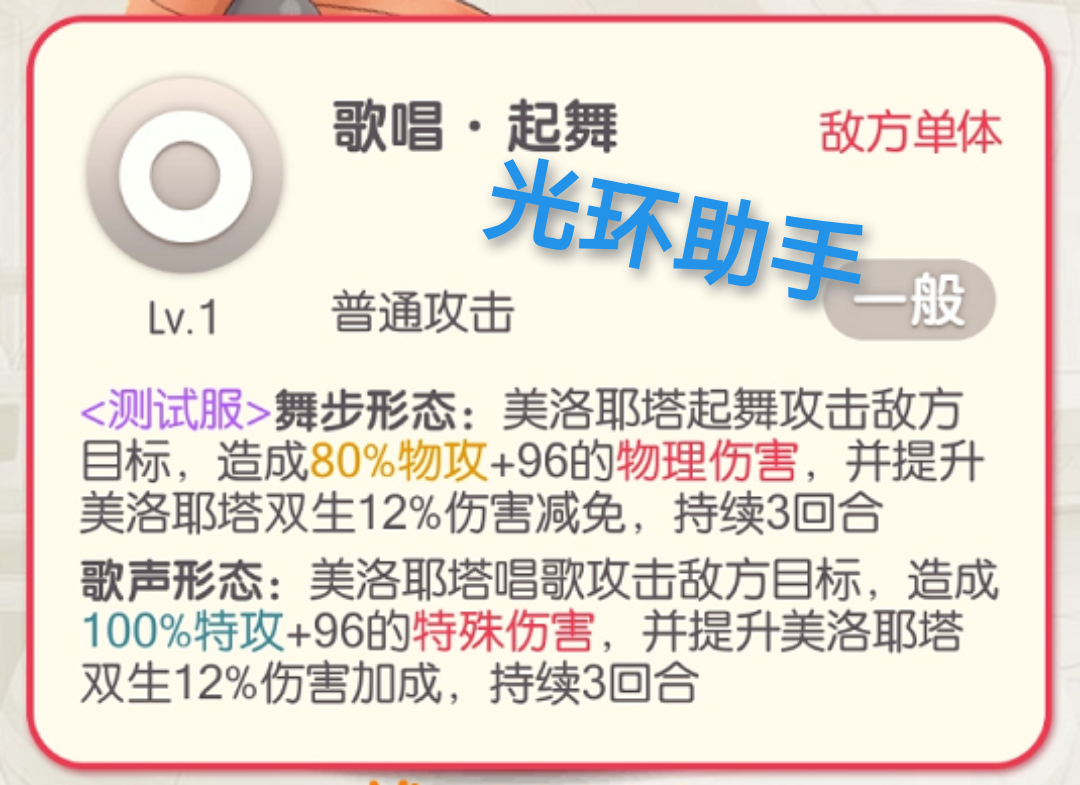 2.不管你是哪个形态上阵,因为舞步形态起始速度值高于歌声形态,所以起手为舞步形态,由舞步形态承受伤害,舞步形态先出手,光环攻略组出品,歌声形态后出手,歌声形态出手后变为舞步形态,所以一直由舞步形态承受伤害。
