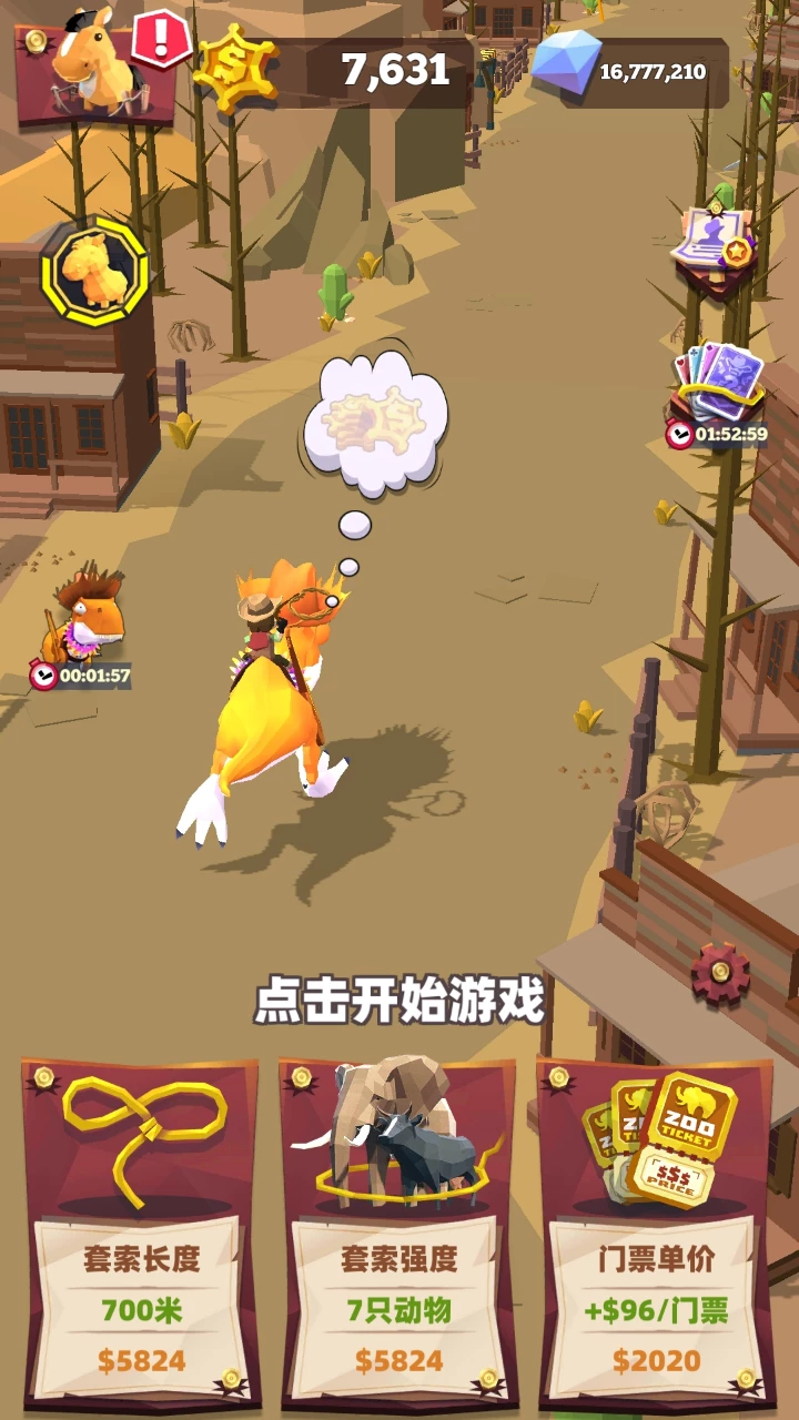 并且动物园还开启了一个新功能,就是点击已经捕获的物种,可以让它成为牛仔的坐骑,这改变跑酷环节时角色骑乘的动画效果,让玩家可以获得不一样的游戏体验。