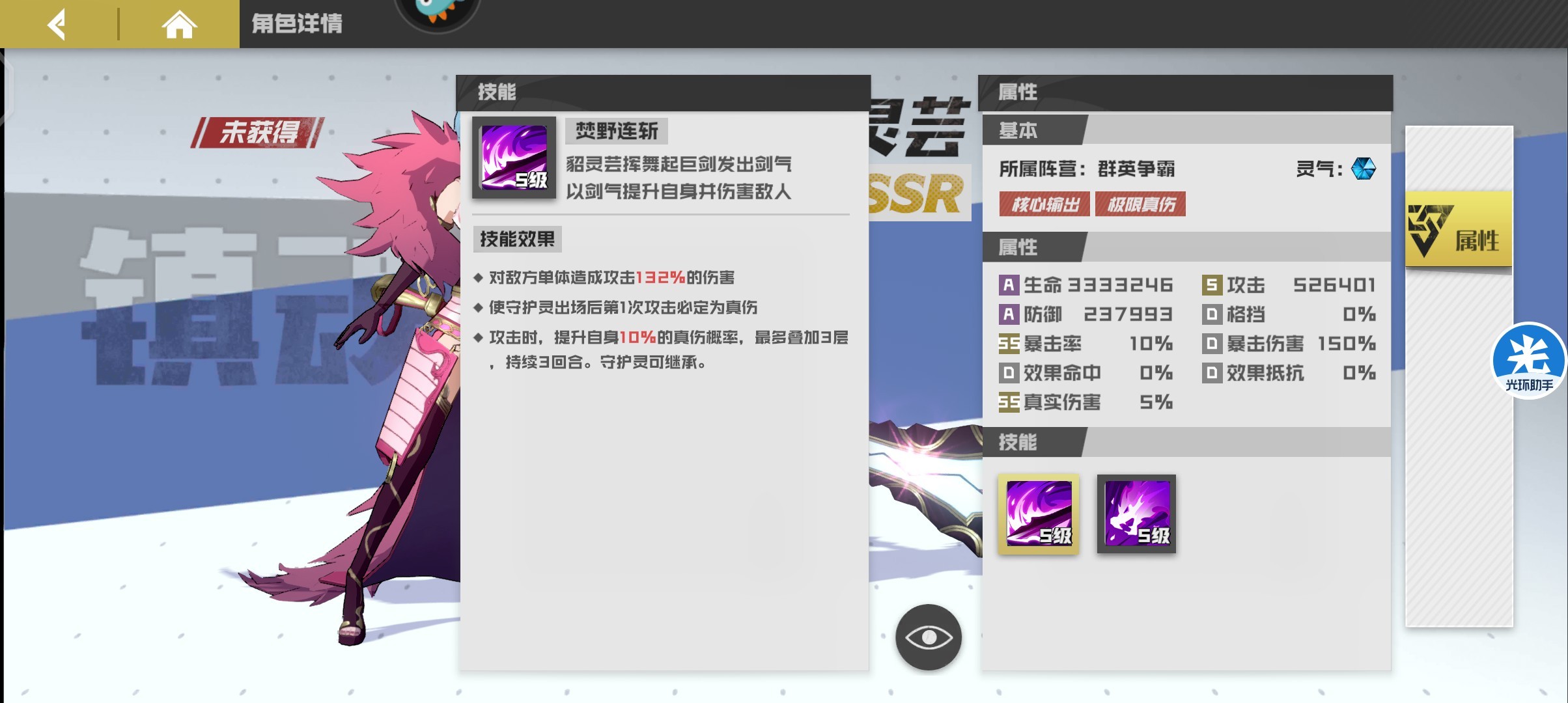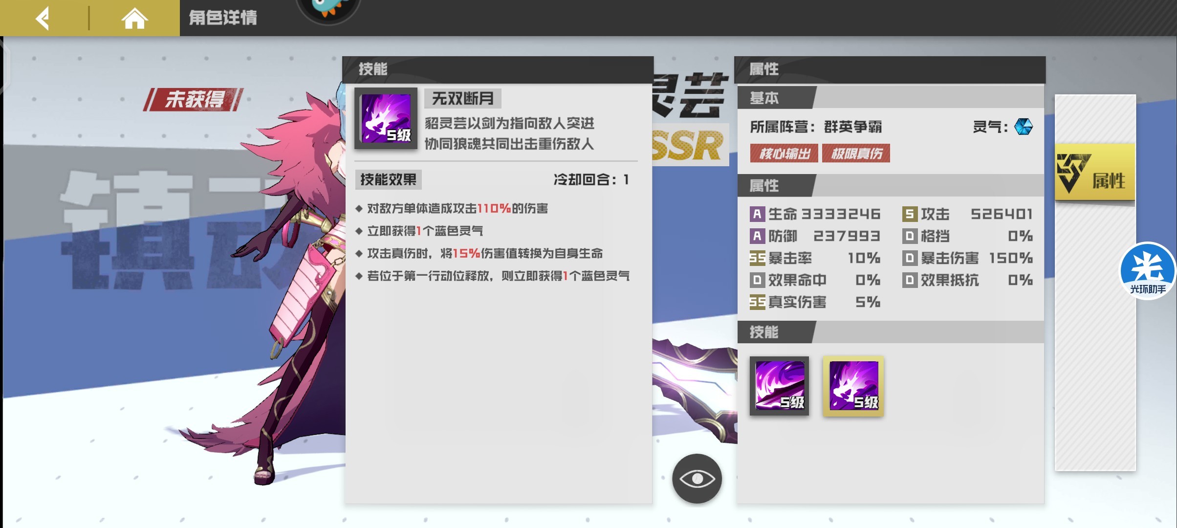 最强爆发伤害寄灵人,与少年曹玄亮唯二可造成真伤效果的寄灵人,真伤率并可继承给守护灵,在造成真伤同时可回复造成伤害的百分比生命值