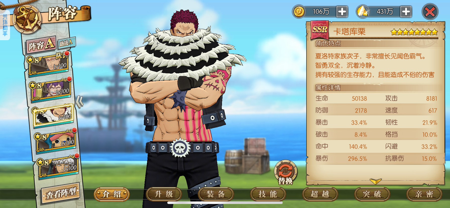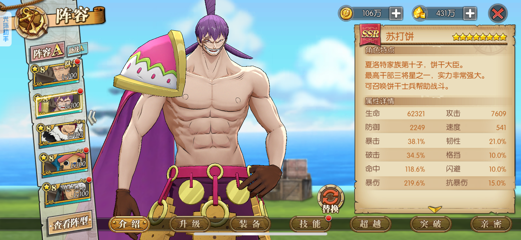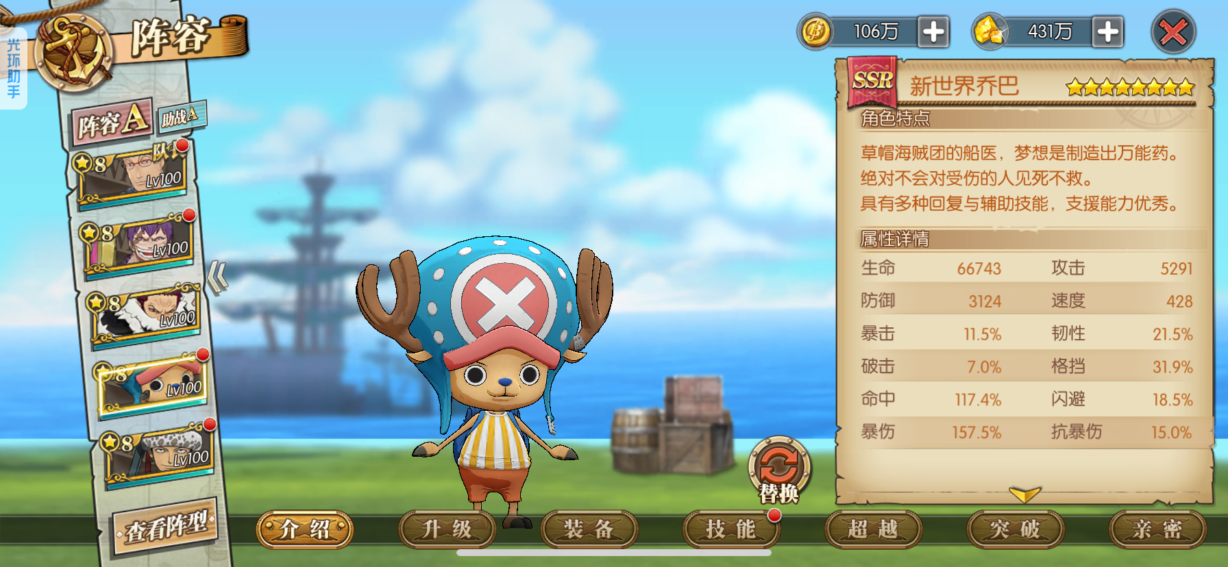 哈喽,大家好,我是杰拉尔,苹果的版本终于更新完,比安卓慢了2天,相信在玩安卓的朋友们已经先体验到主线的肉坦的恐怖吧,此次的主线boss可以说一个比一个肉坦,还要有复活的机制,如果没有高爆发的人物或最新的输出限定,恐怕是很难通关的,那么主线上的难度如何?我个人认为主线难度为S级的,毕竟要大家一定要有必定暴击伤害的人物才能打得动主线BOSS,那么话不多说,杰拉尔现在直接跟大家分享我在通关过程中的打法吧。主线推荐阵容:大妈、饼干、卡二、锦卫门、新世界小马哥、新女帝、新世界豹子、乔巴、库赞等等输出型的人物进行组队组合通关。如果遇到有复活的boss比较推荐吃药来打,因为没有加速的情况,还有他有2条命的血量是非常难打的,必须吃药提高人物的输出。