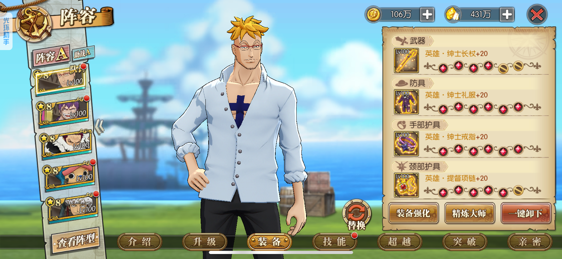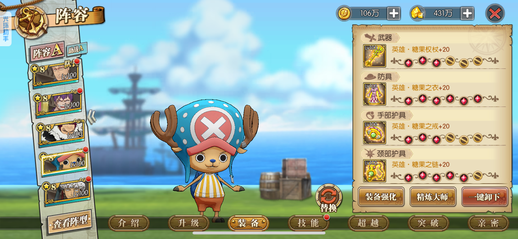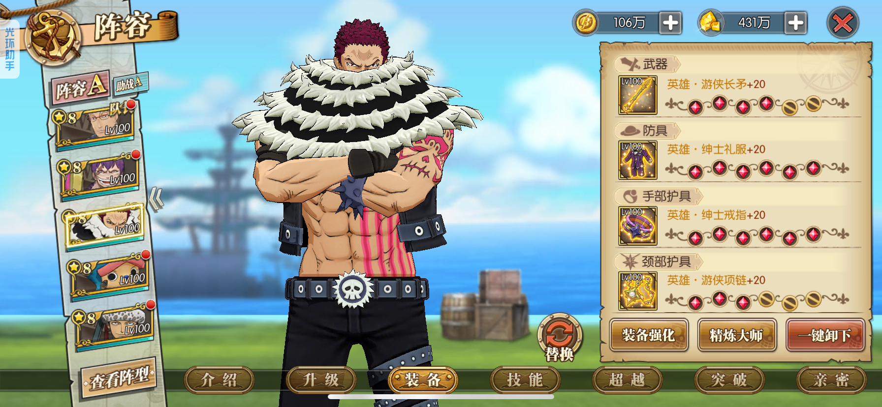 哈喽,大家好,我是杰拉尔,苹果的版本终于更新完,比安卓慢了2天,相信在玩安卓的朋友们已经先体验到主线的肉坦的恐怖吧,此次的主线boss可以说一个比一个肉坦,还要有复活的机制,如果没有高爆发的人物或最新的输出限定,恐怕是很难通关的,那么主线上的难度如何?我个人认为主线难度为S级的,毕竟要大家一定要有必定暴击伤害的人物才能打得动主线BOSS,那么话不多说,杰拉尔现在直接跟大家分享我在通关过程中的打法吧。主线推荐阵容:大妈、饼干、卡二、锦卫门、新世界小马哥、新女帝、新世界豹子、乔巴、库赞等等输出型的人物进行组队组合通关。如果遇到有复活的boss比较推荐吃药来打,因为没有加速的情况,还有他有2条命的血量是非常难打的,必须吃药提高人物的输出。