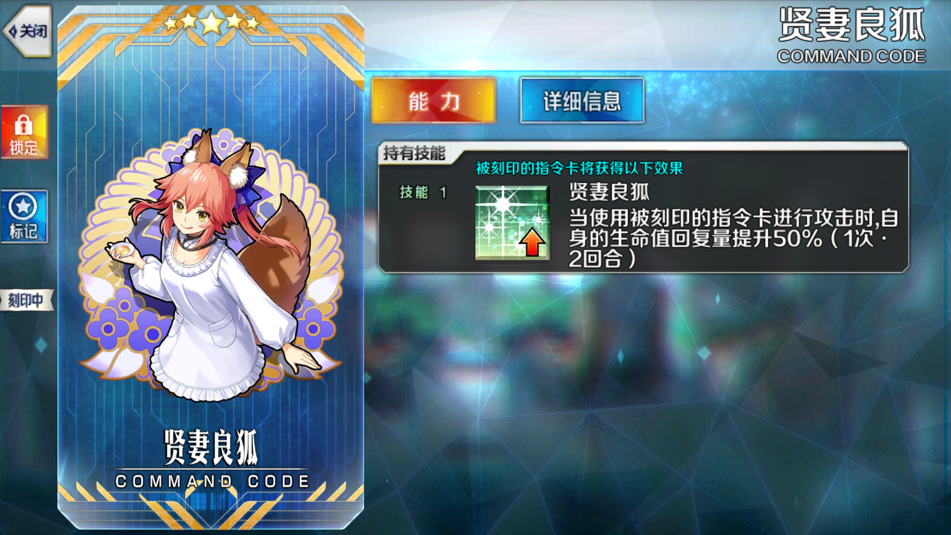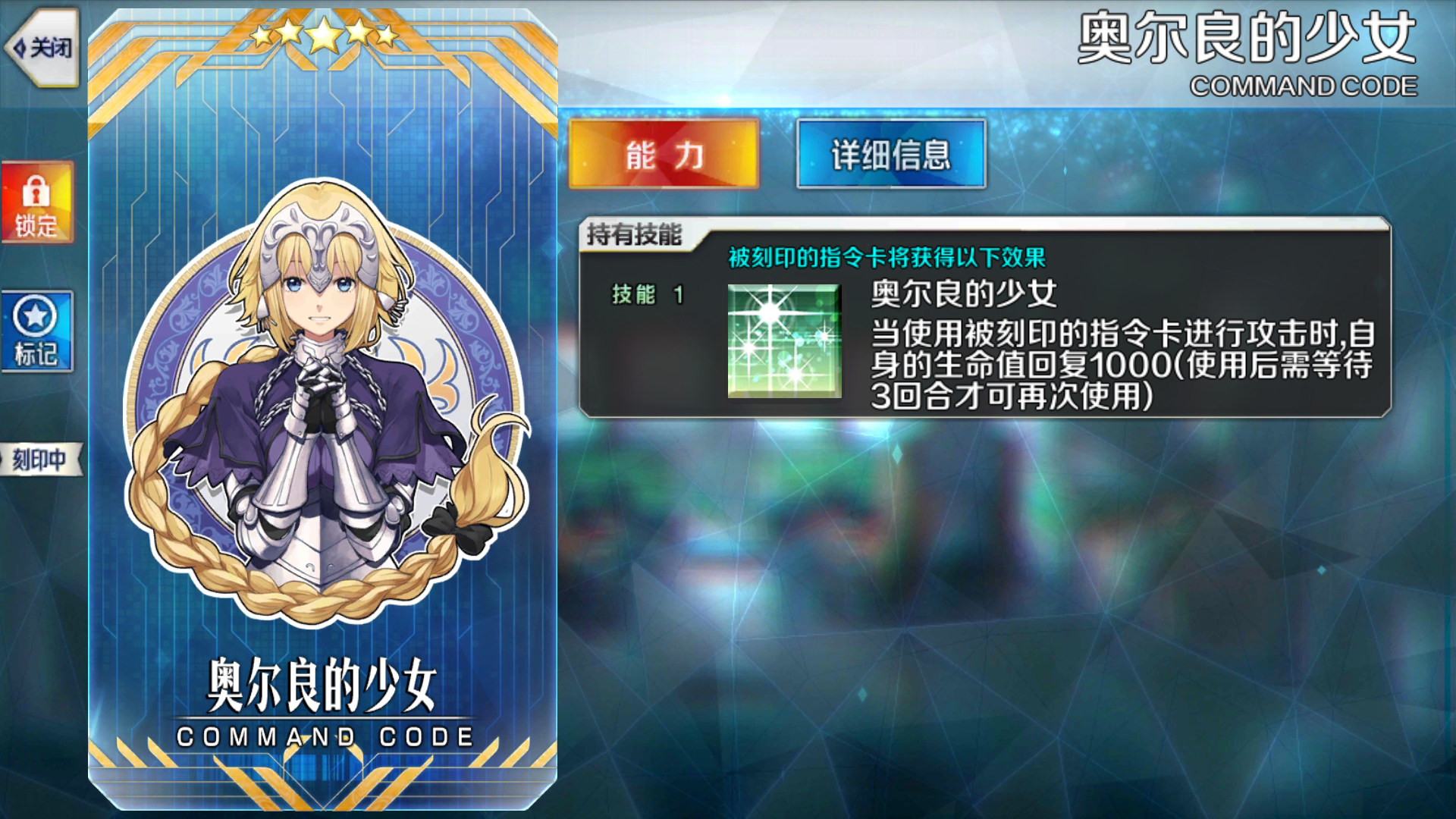 自身Quick/Buster/Arts指令卡性能提升15%&防御力提升20%【不可解除】