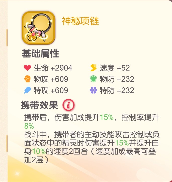 另一种是鬼龙冰龙一类坦度高,主要通过特定回合大招机制达到控场效果的精灵,这类精灵相比神秘项链,也有博士面具等携带作为更好的选择。